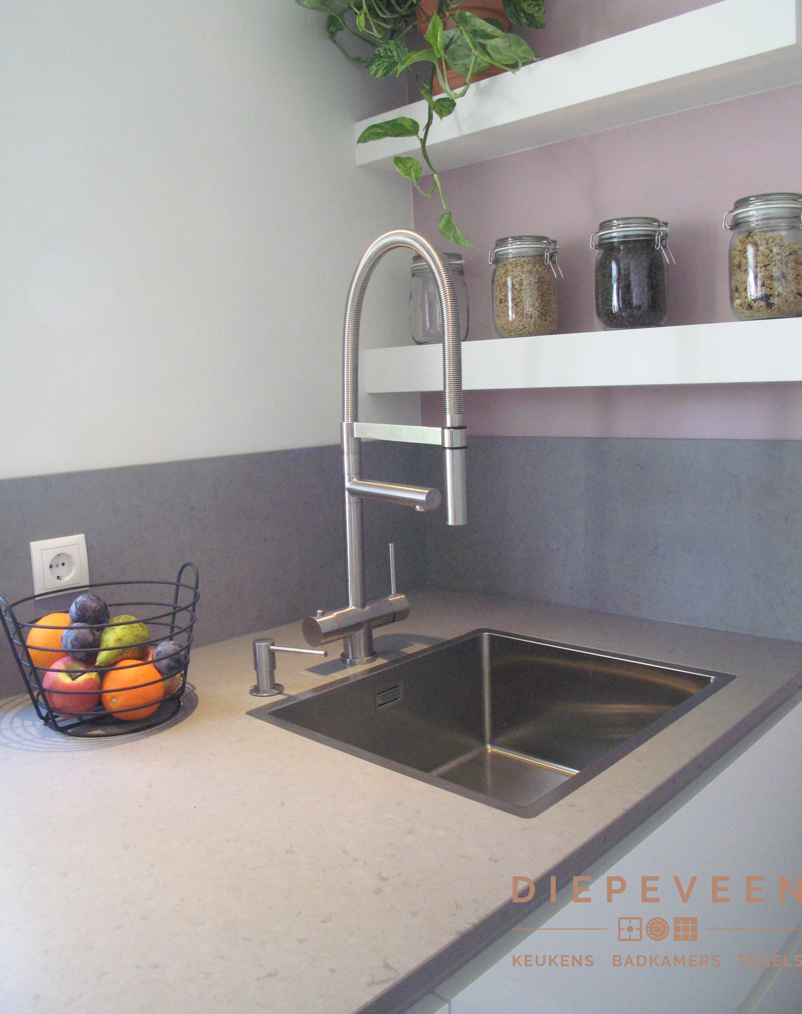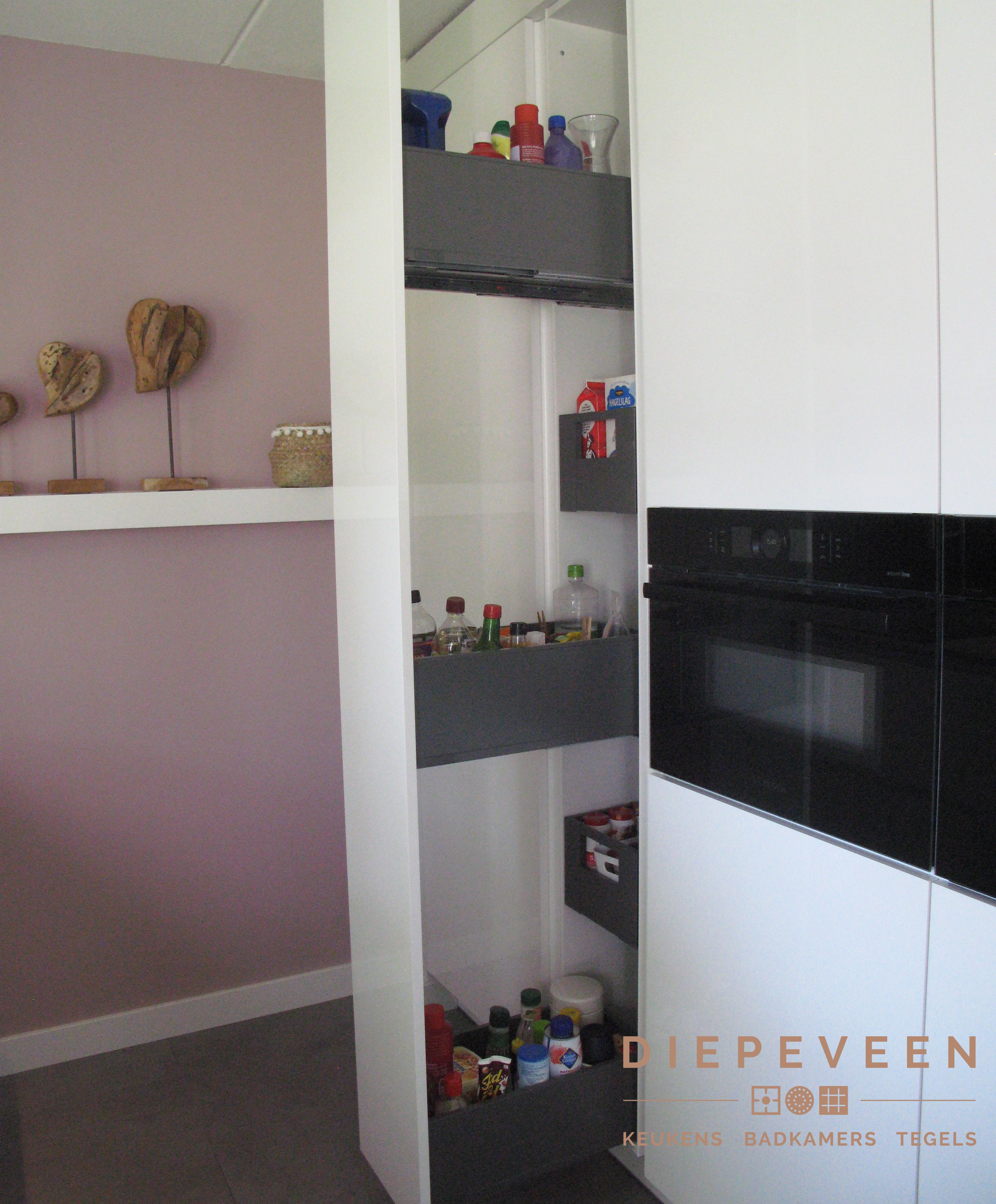 Een moderne keuken. Ideaal met zoveel opbergruimte!