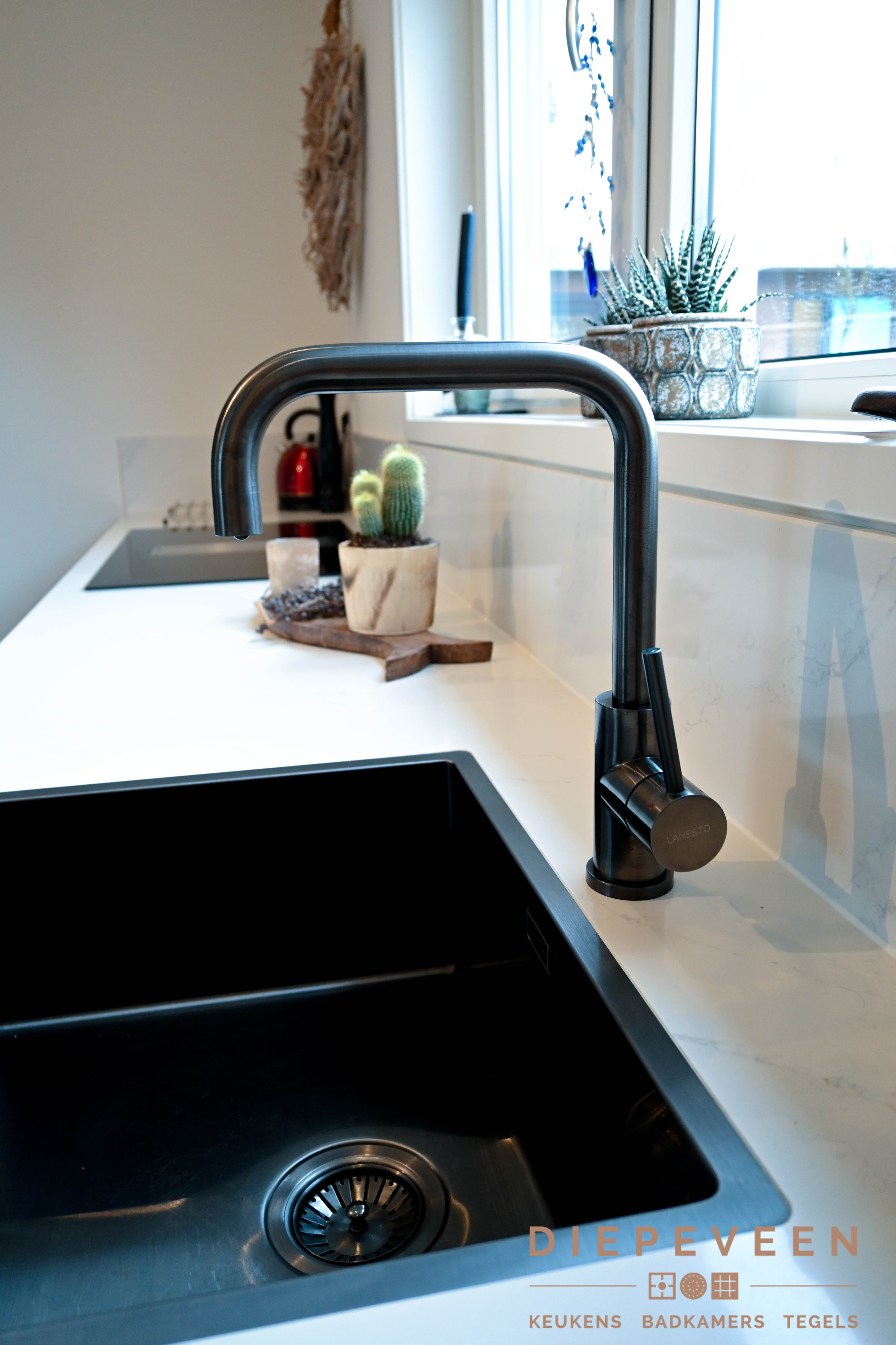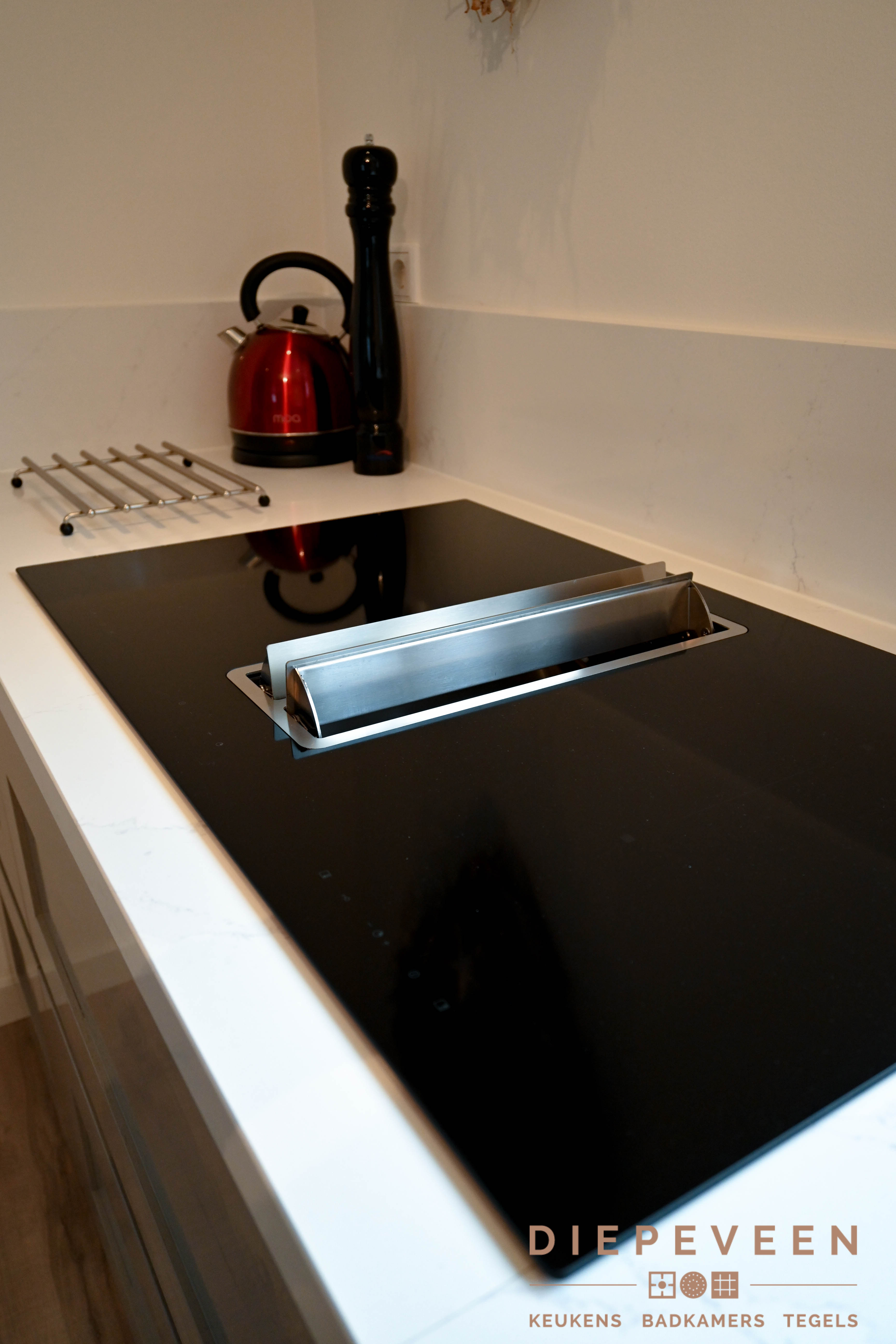 Een moderne keuken met een gezellige sfeer. Wat wil je nog meer?