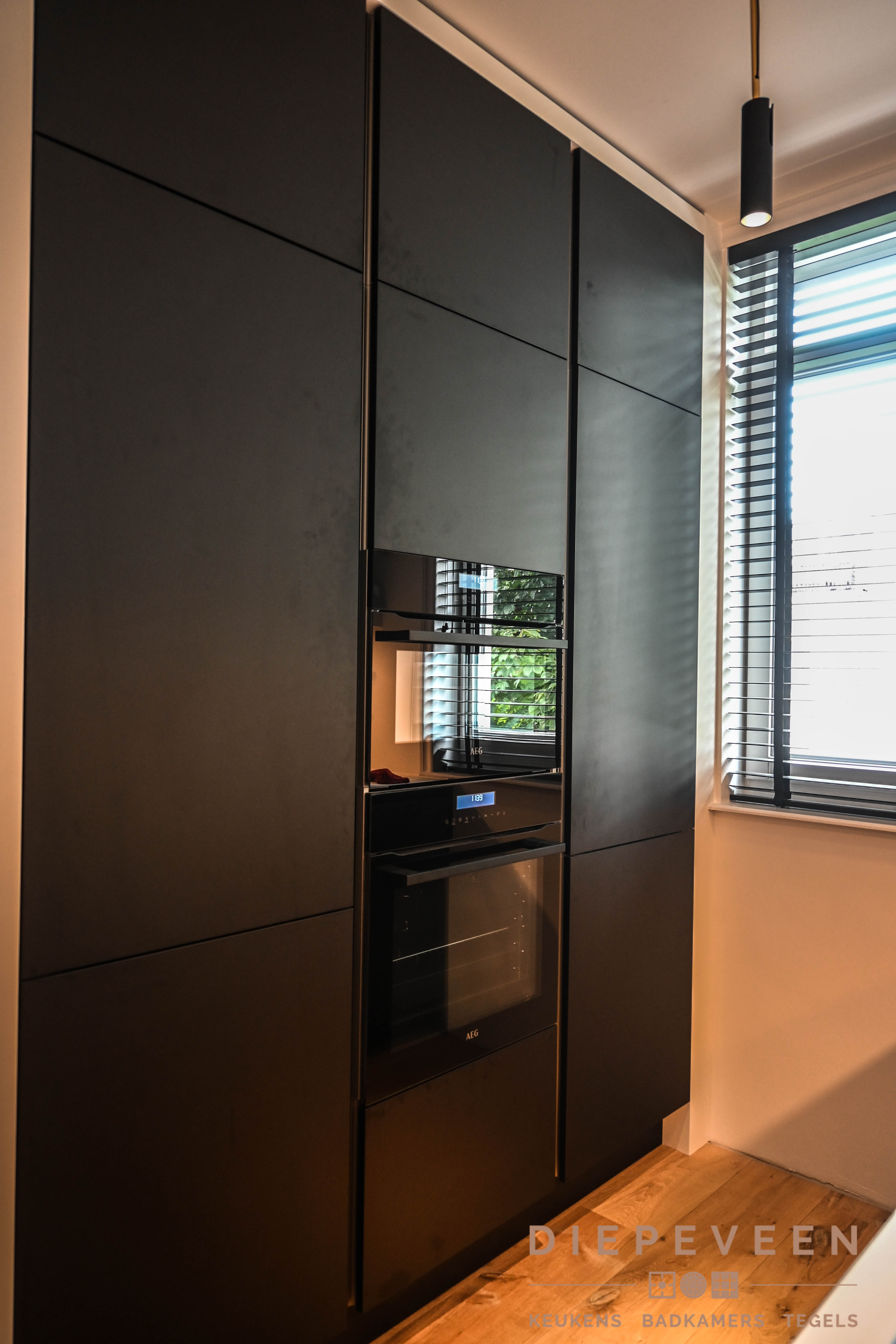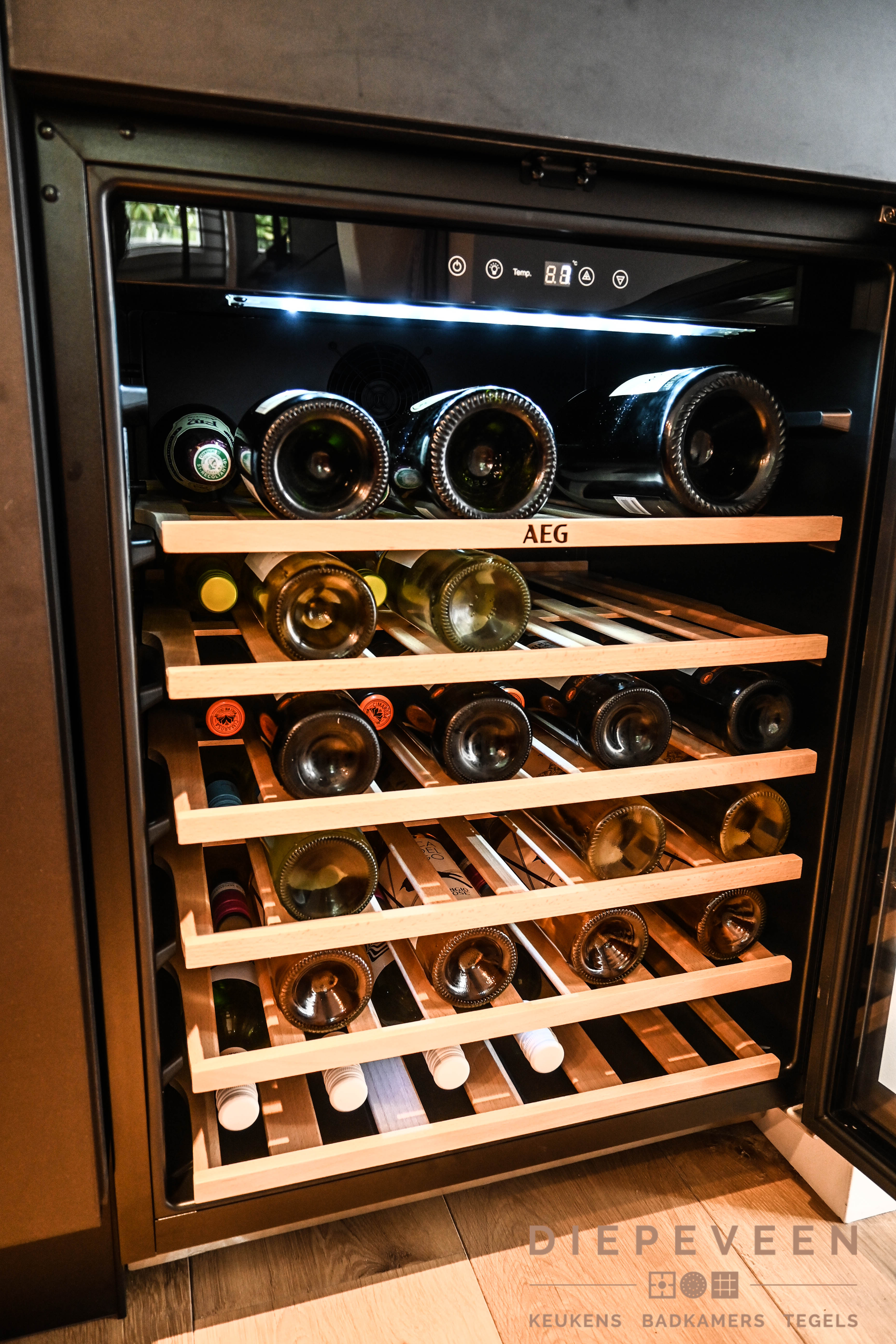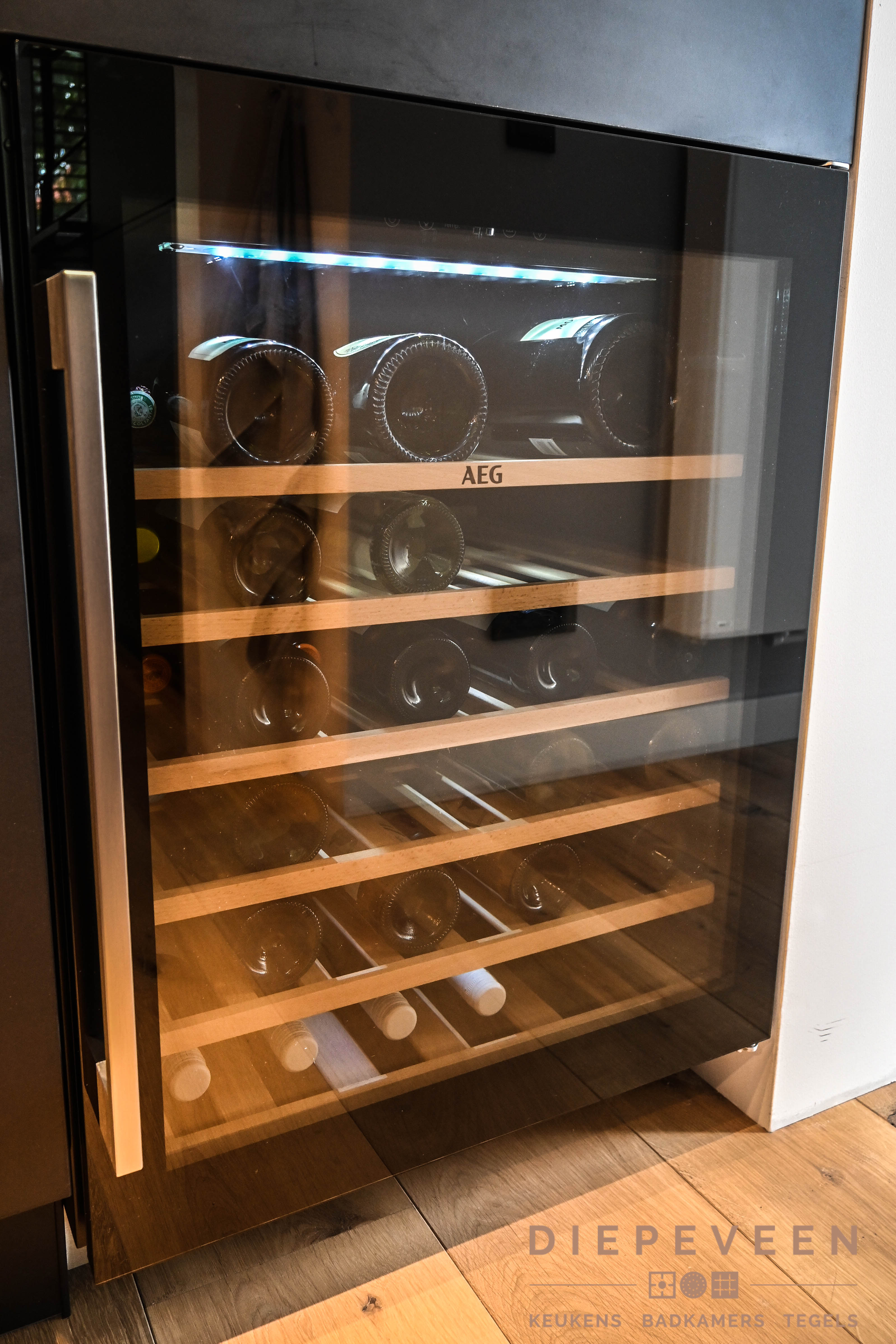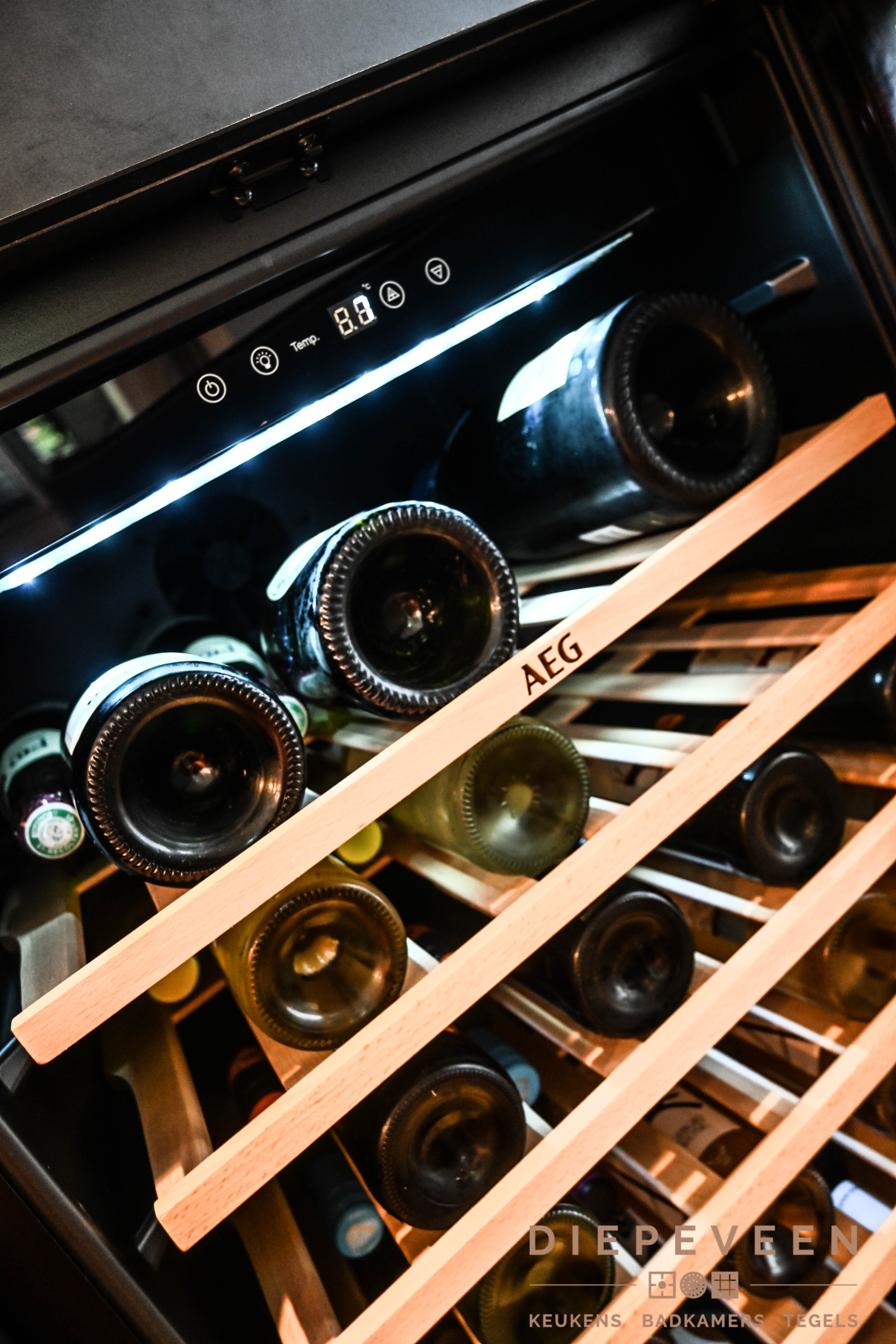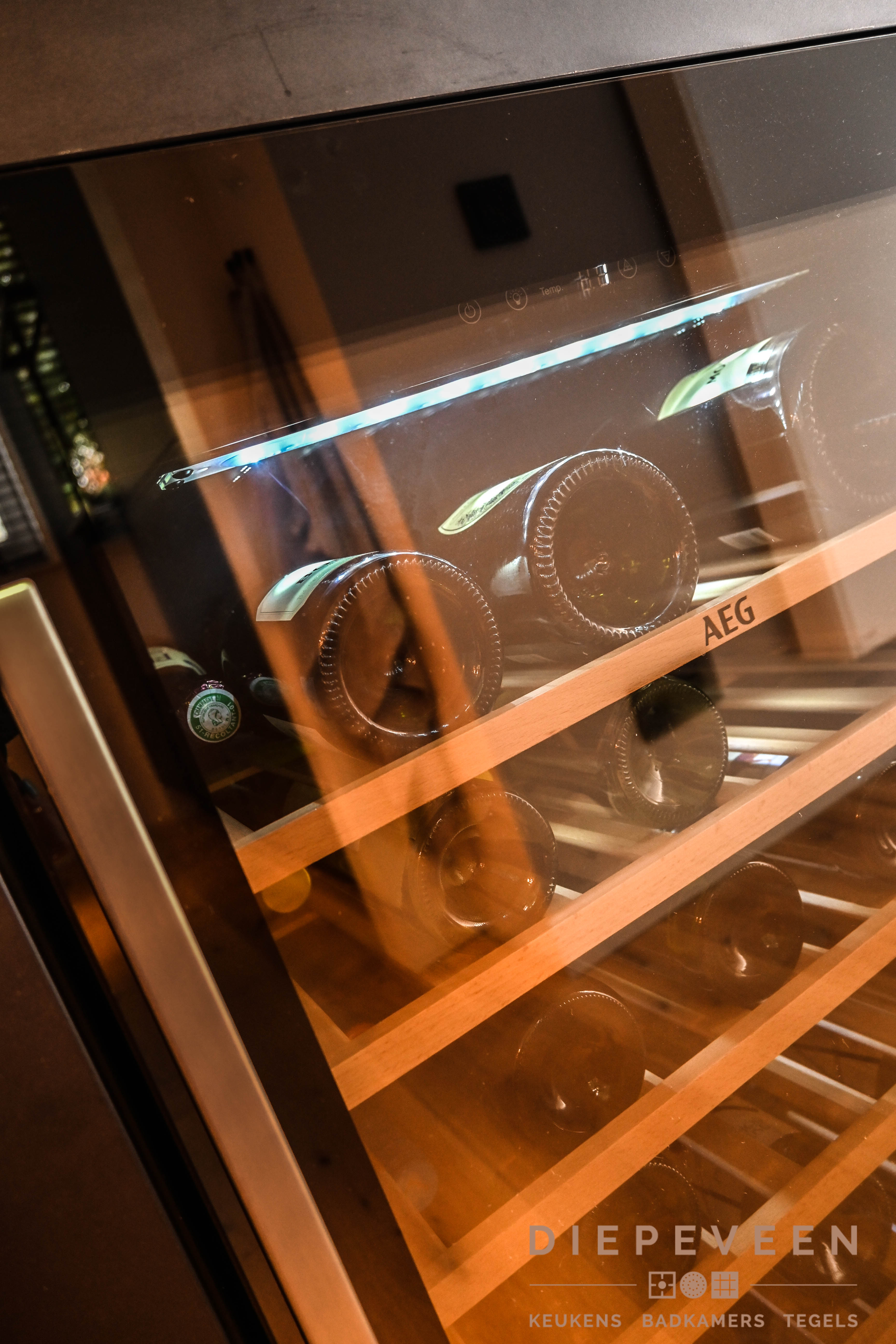 Deze moderne hoekkeuken steelt wel echt even de show in de woning van deze familie! De keuken is uitgevoerd in een taupegrijze kleur en het apparatuur is van AEG. Ben jij een echte wijnliefhebber? Denk dan zeker eens na over een wijnkoeler! Altijd jouw favoriete wijntjes op de perfecte temperatuur.