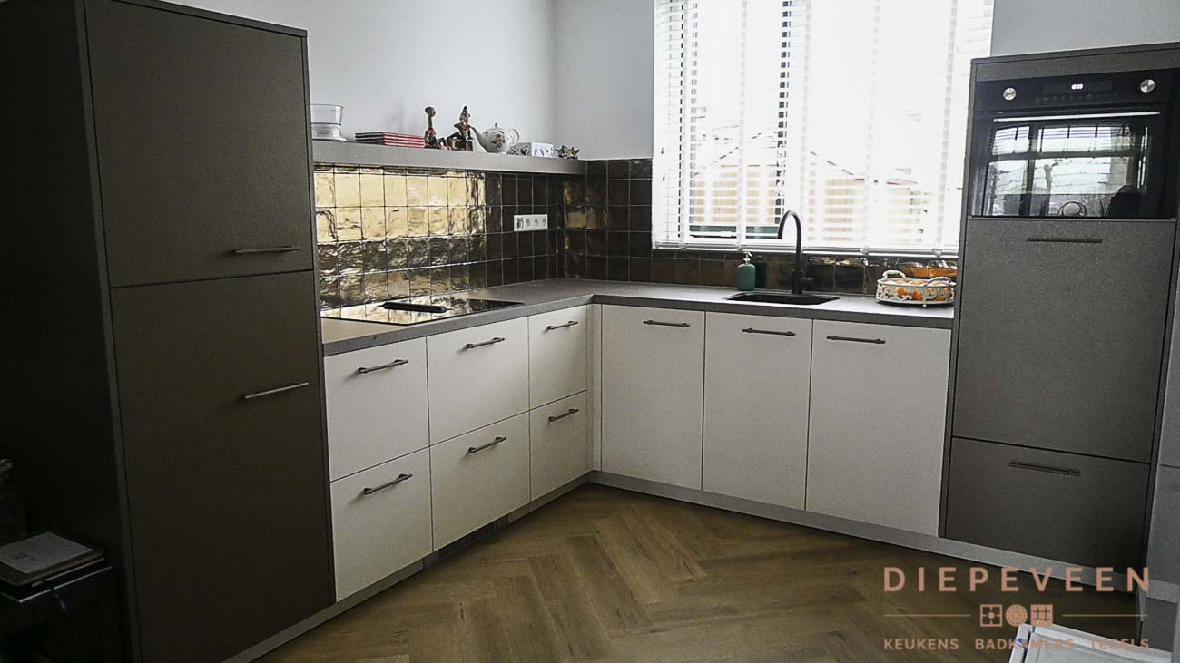 Een geheel met verdere aankleding, compleet gemaakt door mega 90cm oven van Boretti, verdere apparatuur is geheel van ATAG, en een greenpanel Dekker Zevenhuizen werkblad, zeer mooi geheel. Verdere info www.diepeveen.nl