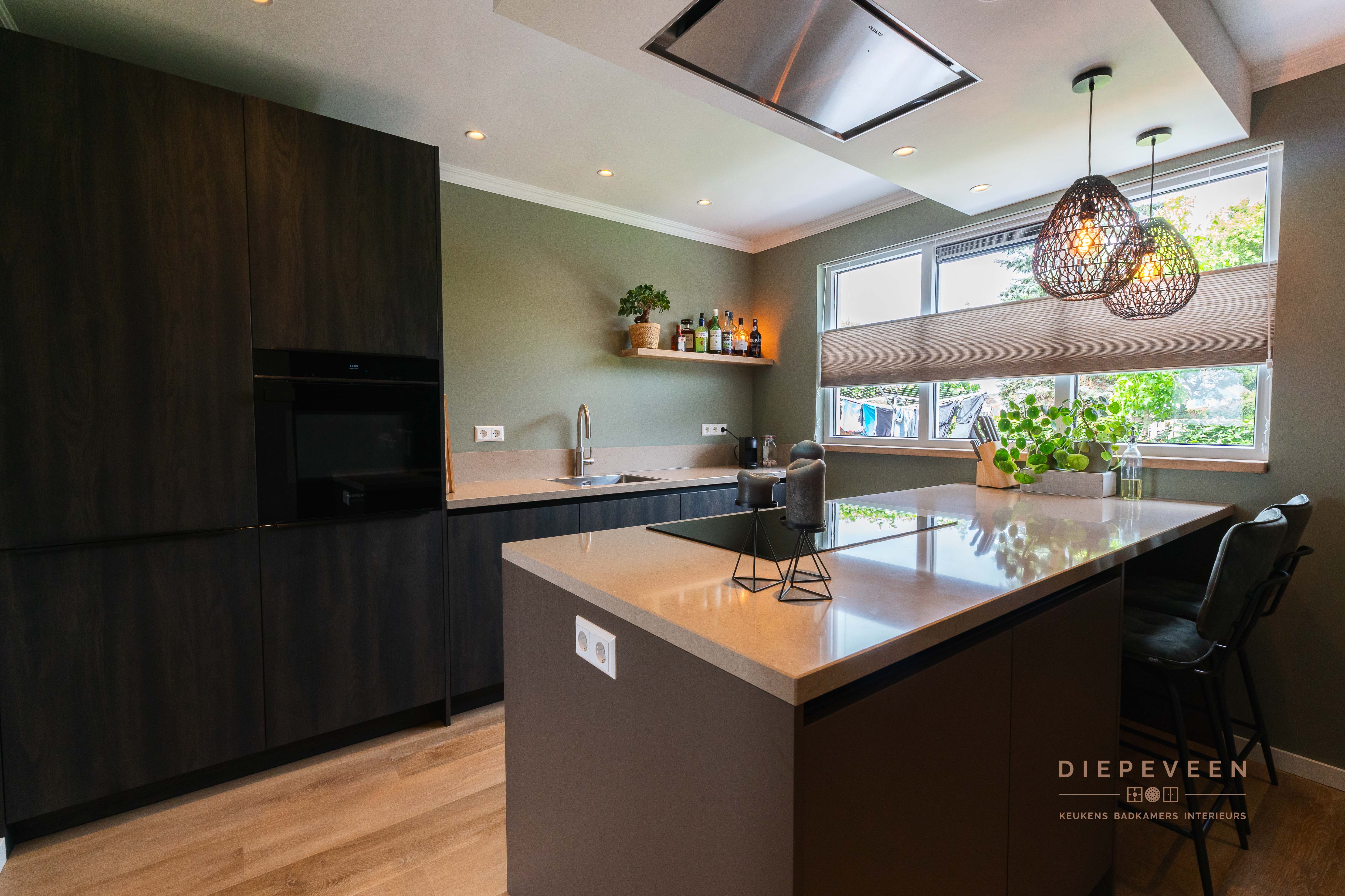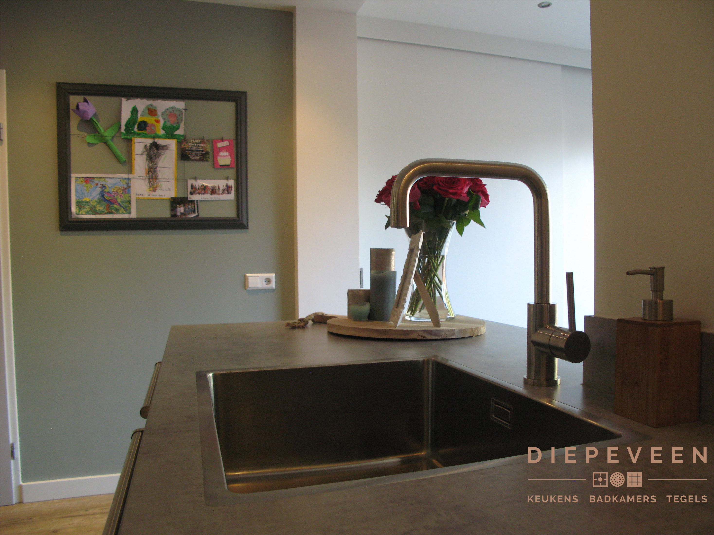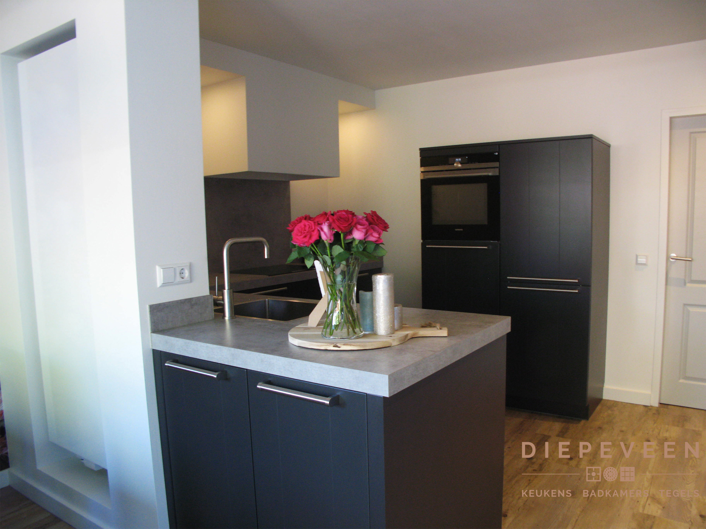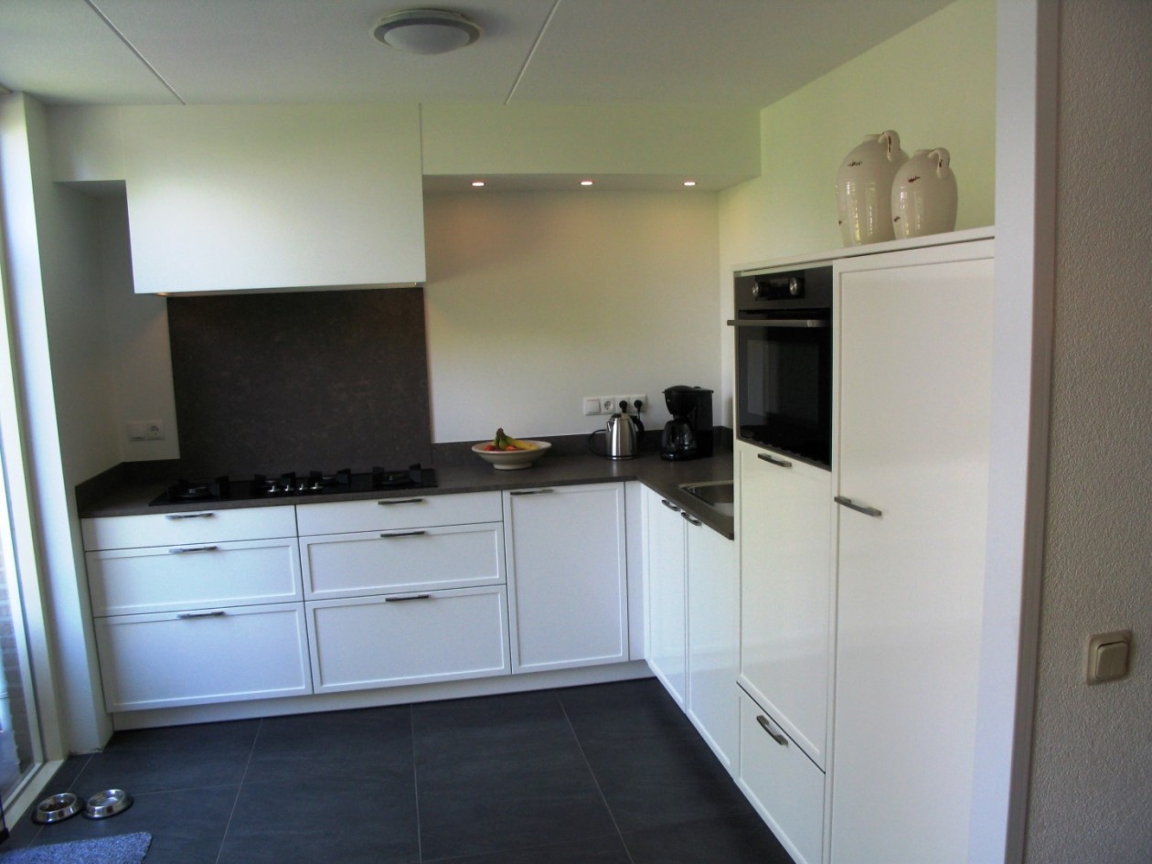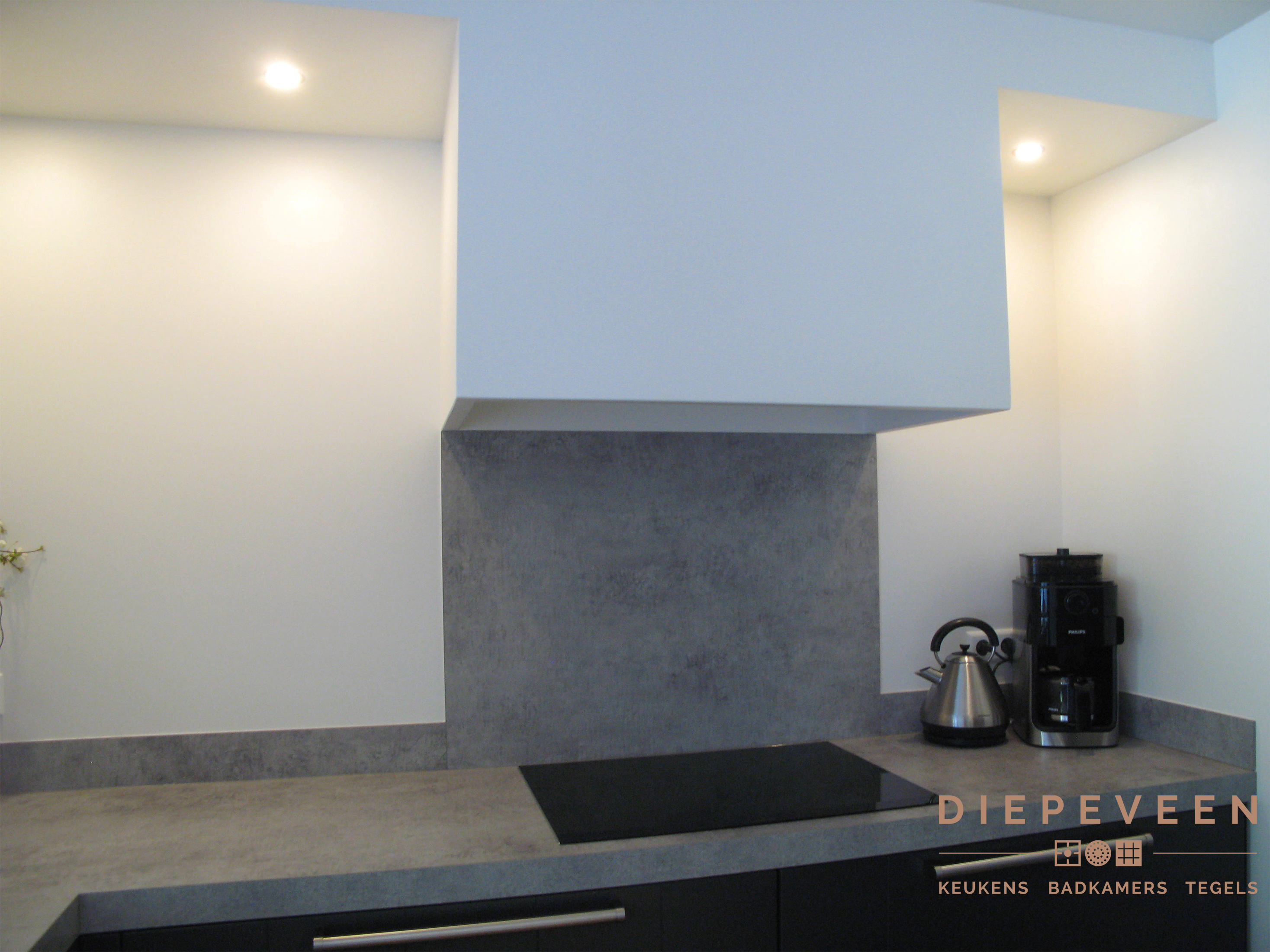 Prachtige moderne keuken. Mooi gecombineerd met een betonlook aanrecht blad en zwarte frontjes. Echt een eye-catcher.