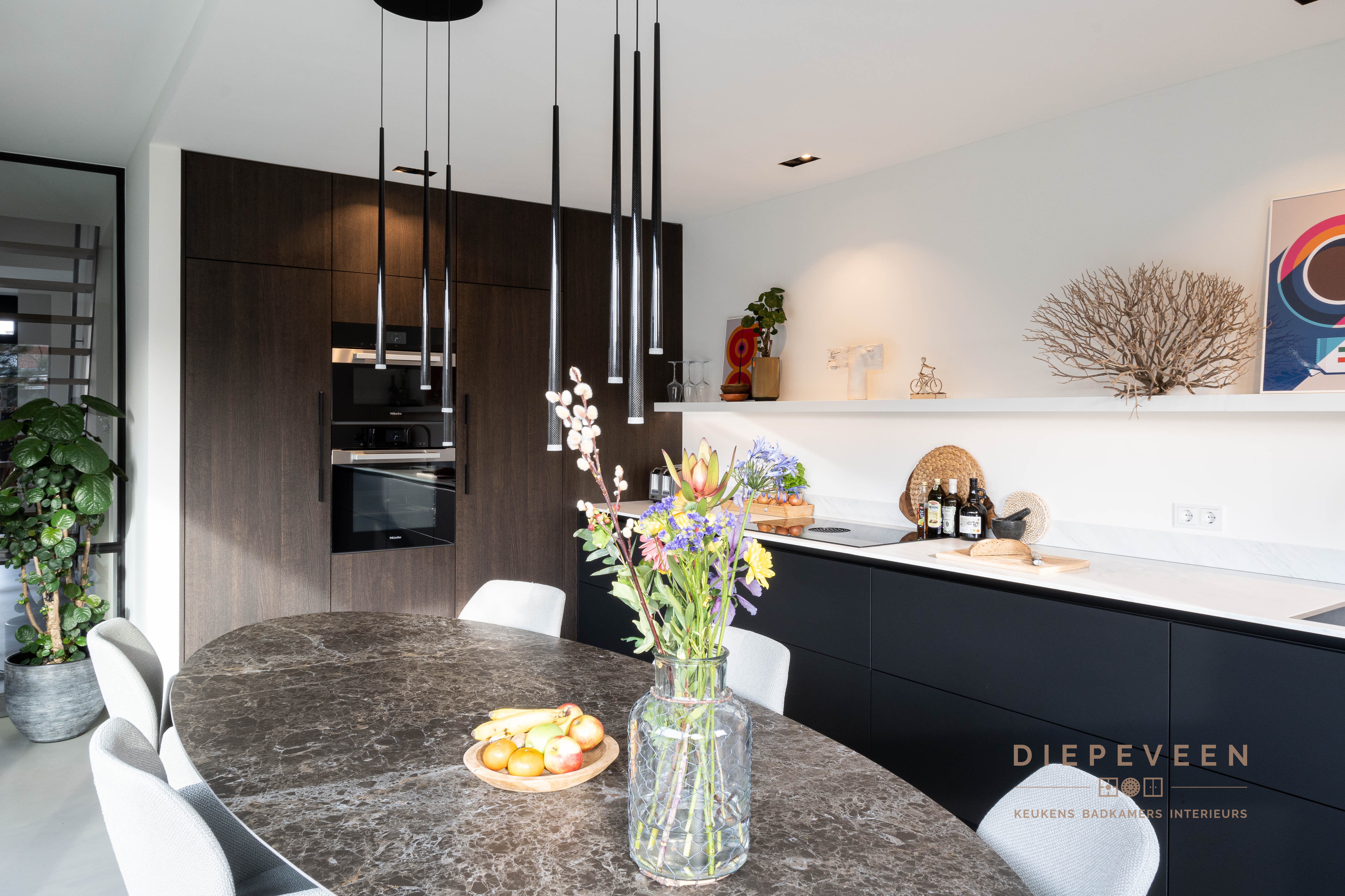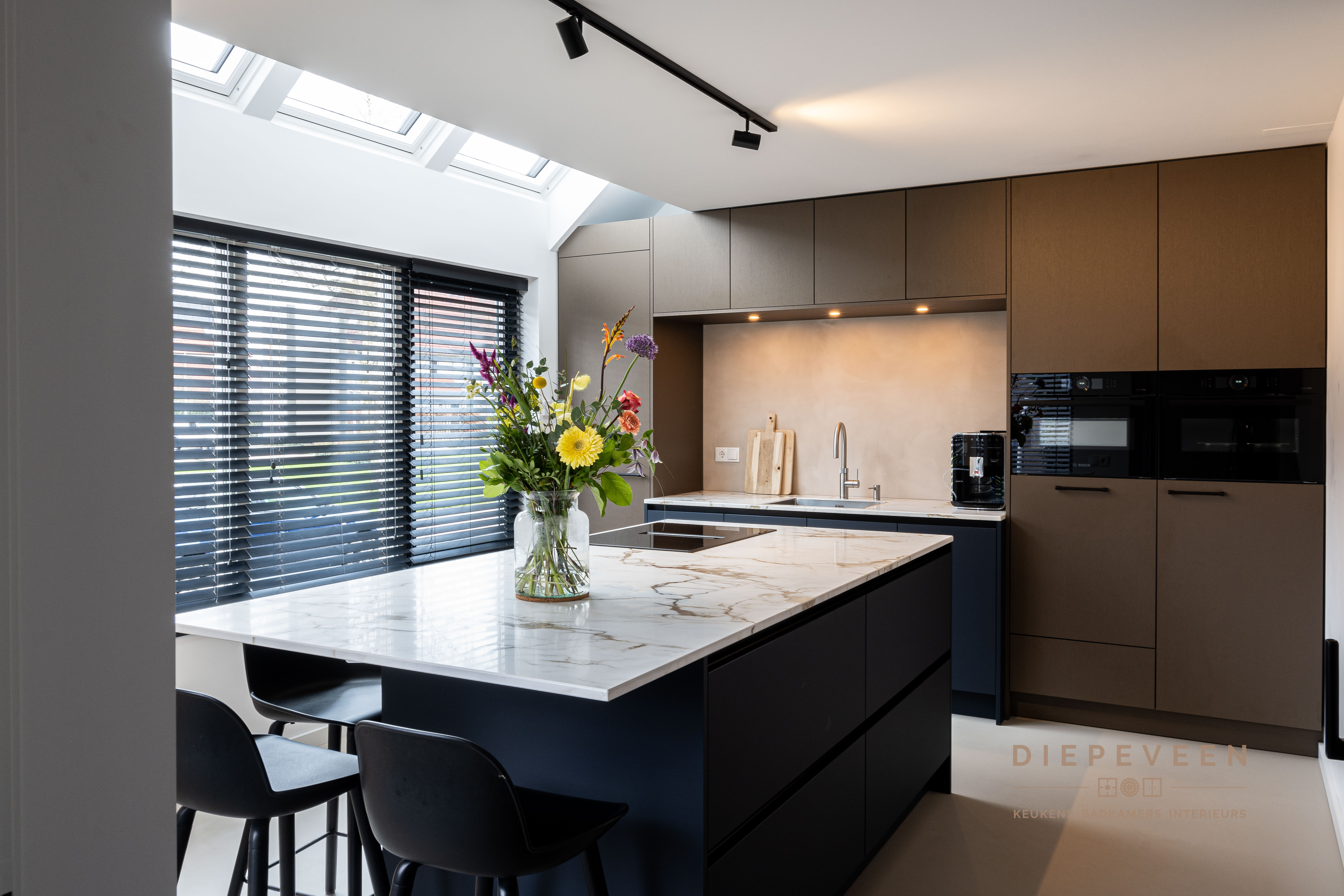 Een gezellige keuken. Heerlijk genieten aan de bar onder het genot van een wijntje uit de wijnkoeler, heerlijk toch!