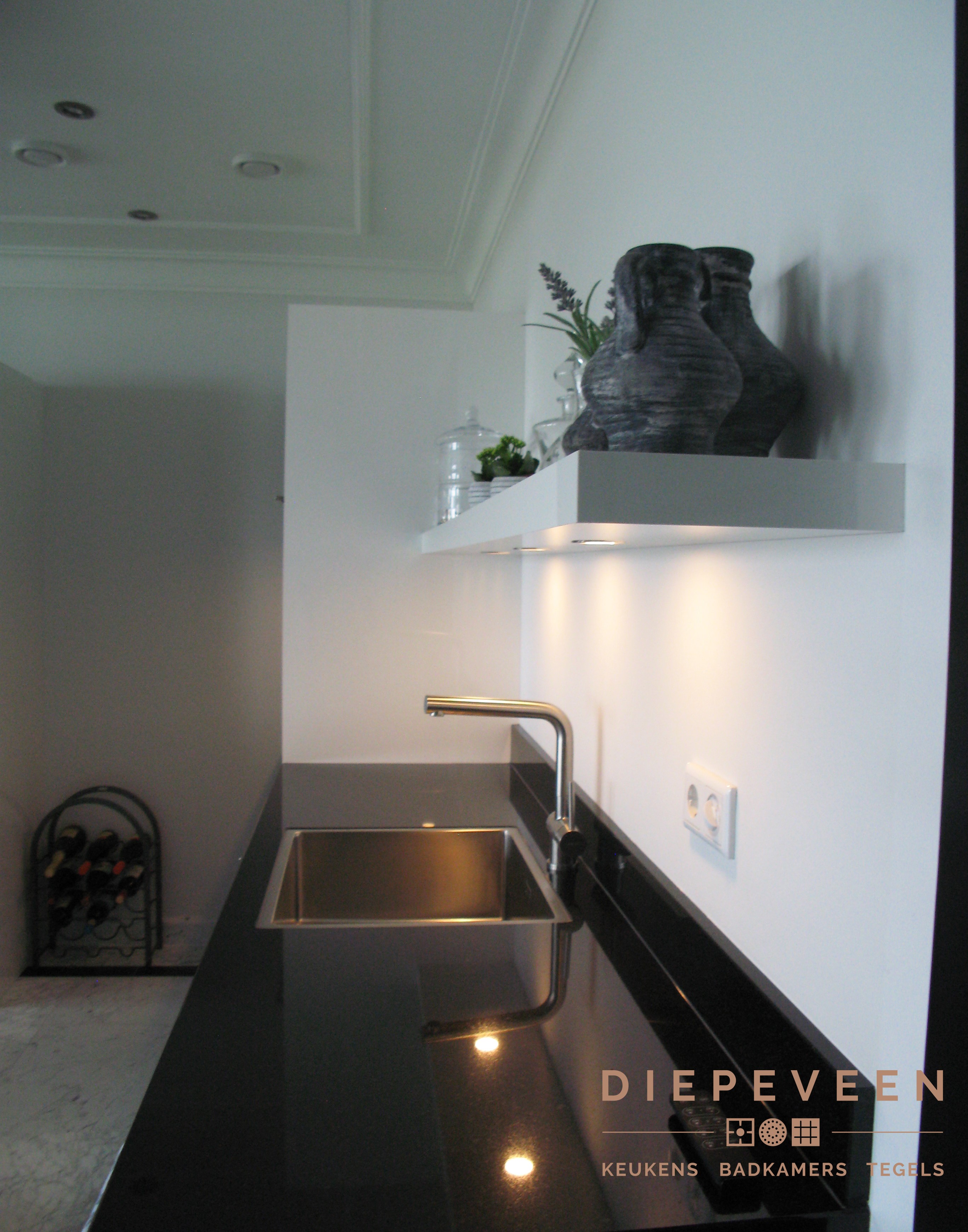 Een prachtige moderne keuken met een keramisch keukenblad.