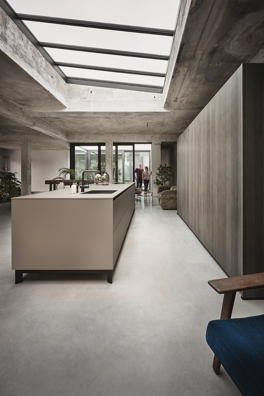 Minder is meer! Ruwe wanden, veel beton en een binnenruimte zonder deuren scheppen een gevoel van vrijheid en meer luchtigheid, meer lucht om in te ademen. De keuken is als een open ruimte geïntegreerd in het geheel om een gevoel van openheid te creëren.