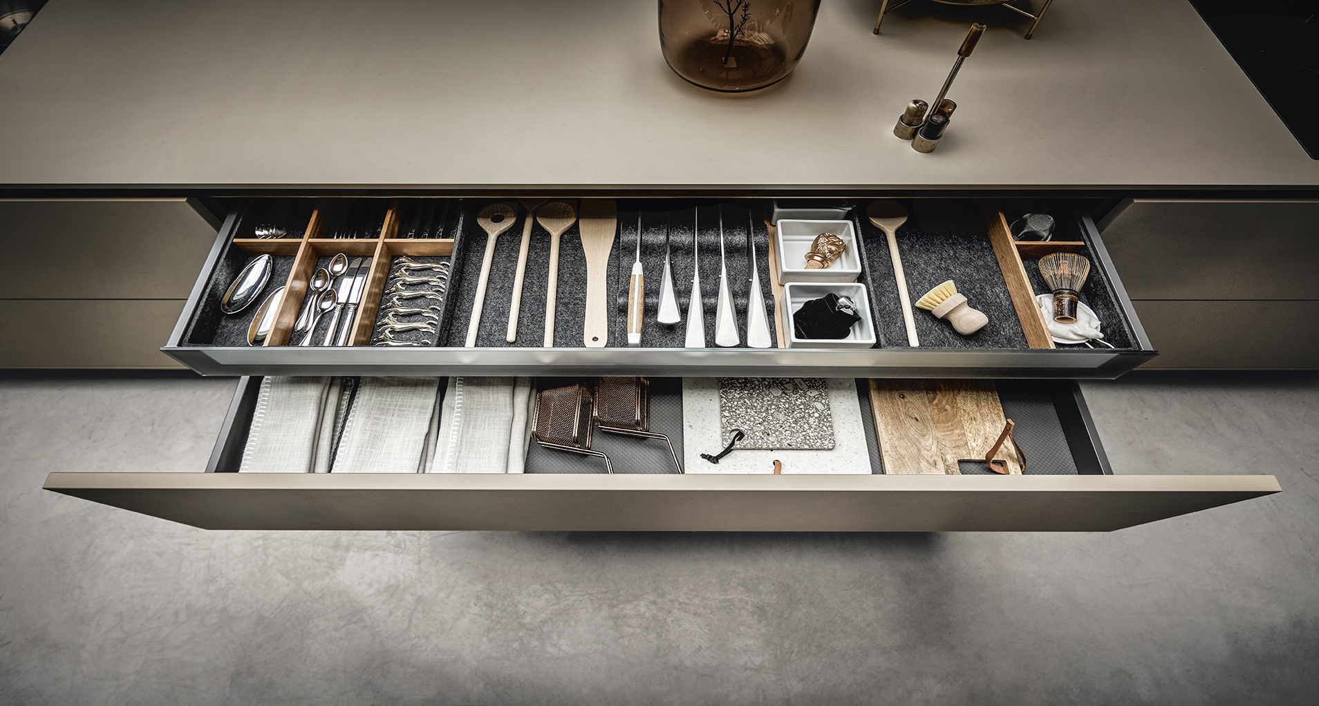 De arbeidsintensief in meerdere stappen geproduceerde en met transparante matte lak verzegelde fronten zijn door de meerlaagse lakopbouw uitermate sterk. Bovendien voelen ze zijdezacht aan.
