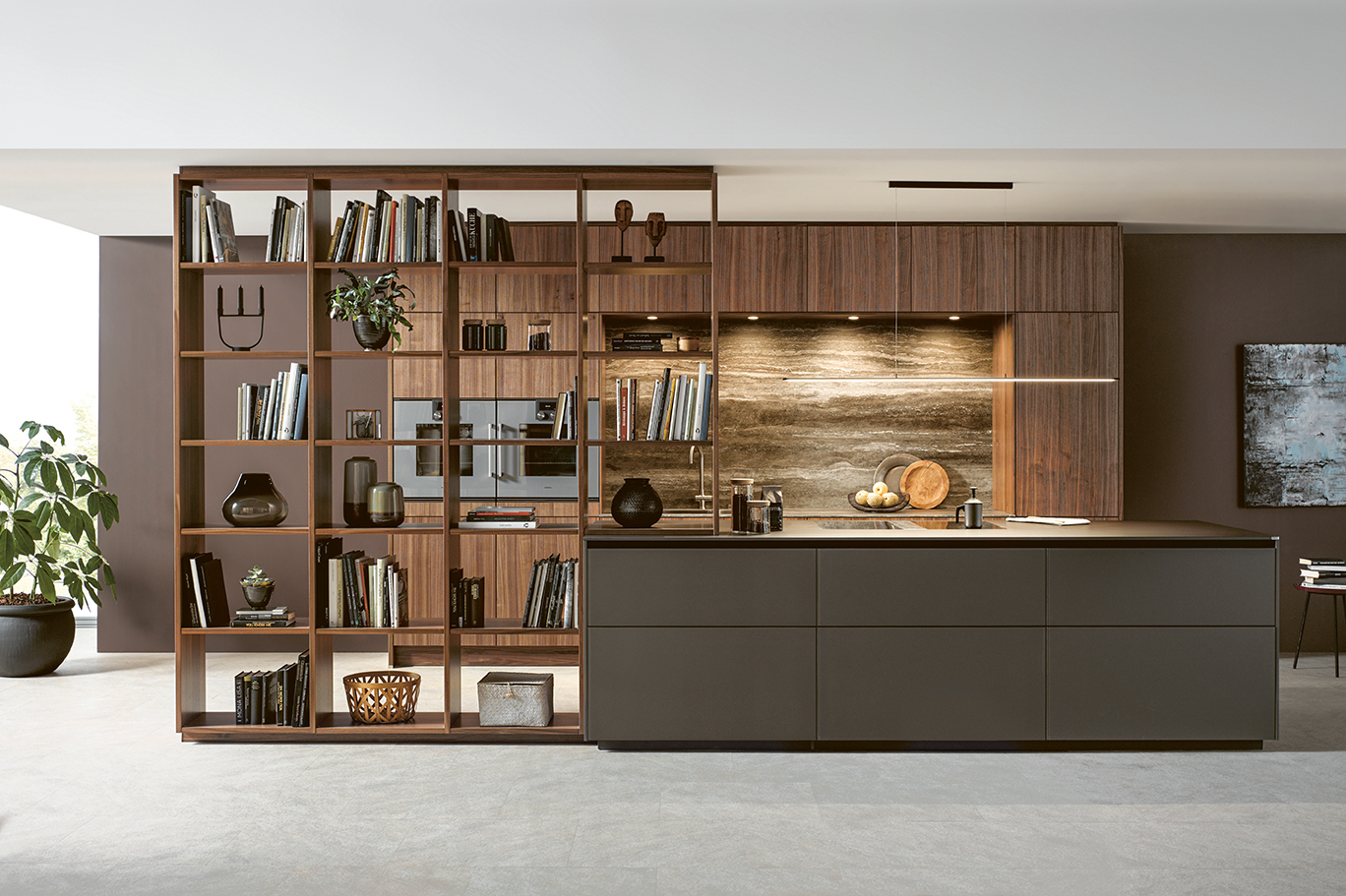 De NX870 Fenix mokkabruin / noten natuur is één van de prachtige keukens uit de next125 keukencollectie. Een keuken die stijlvol is en door de open kast het ruimtelijke element van het woonkarakter op subtiele wijze benadrukt. De fronten van deze keuken zijn greeploos en voorzien van geïntegreerde Tip-on. Door het weglaten van grepen straalt de keuken rust en eenvoud uit. Ook is er gekozen voor een kookplaat met geïntegreerde afzuiging, zodat er geen afzuigkap nodig is die de open blik in de keuken zou kunnen verstoren.
