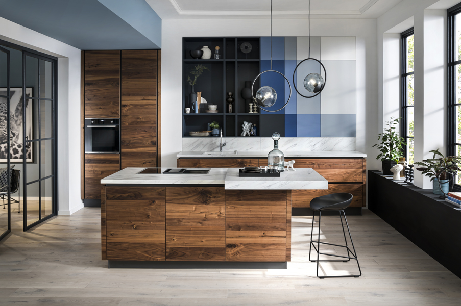 Ronde vormen in de keuken doorbreken de strakke lijnen en zorgen voor een minder harde uitstraling.