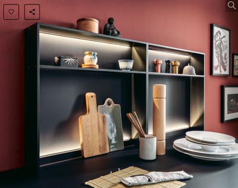 Ook de uitrusting kun je aanpassen. Zo zijn er roosters, dien- en uittrekbladen in eiken, al dan niet met glazen opzetelement. Het aantal niveaus en de positionering kies je helemaal zelf.