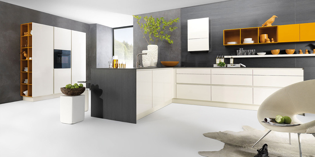 Als geheel nieuwe interpretatie van de greeploze keuken is Neos gebaseerd op een uniek concept. Niet alleen bij het design plaatst dit ontwerp nieuwe maatstaven. Ook de materialen zoals walnoot, gekleurd glas en edelstaal voldoen aan de hoogste eisen.