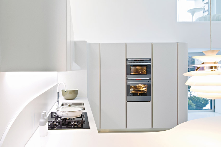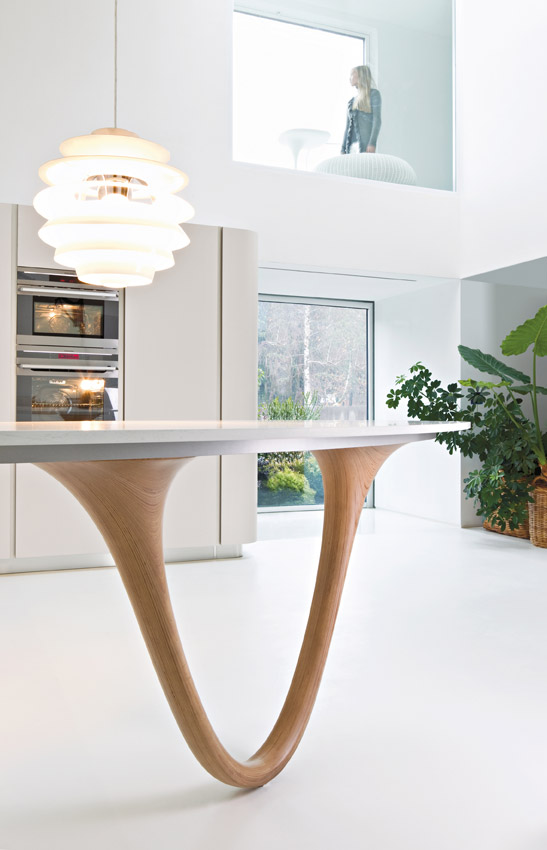 Deze designkeuken is een eyecatcher in iedere woning, villa, appartement. De designers hebben ronde vormen en materialen op elkaar afgestemd in een strakke belijning. De elegante voet onder het barblad is het gezicht van de Ola20.