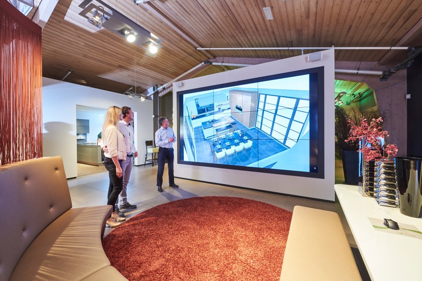 Bij Tieleman Keukens zijn ze gek op de nieuwste technologieën en keukentrends. Zo weten zich te onderscheiden in de keukenbranche. Naast Virtual Reality kun je met behulp van de LivingWall het ontwerp alvast op een levensgroot scherm van ruim 3,5 bij 2,5 meter bekijken. Zo zie je keukenplannen werkelijkheid worden en krijg je een realistisch beeld van je woonwens. Eventuele aanpassingen - zoals de kleur, het front, de greep of de indeling - kunnen ze ter plekke voor jou doorvoeren. Dit biedt een nóg beter beeld dan enkel een 3D-tekening.