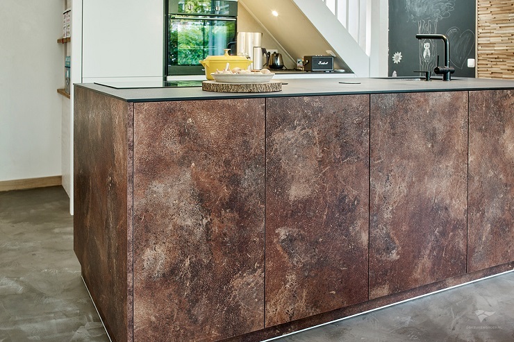 Rotswanden herinneren ons – hoe fijn – aan vakanties en doorgaans niet aan je woonomgeving. Met keukenfronten in een roestrode kleur steen haal je het exotische dichterbij. Als je van aparte, exclusieve materialen houdt, dan vind je dit zeker weten prachtig! De glanzende eigenschappen van steenachtige fronten en de warme, roestrode tint doen het goed in moderne keukens.