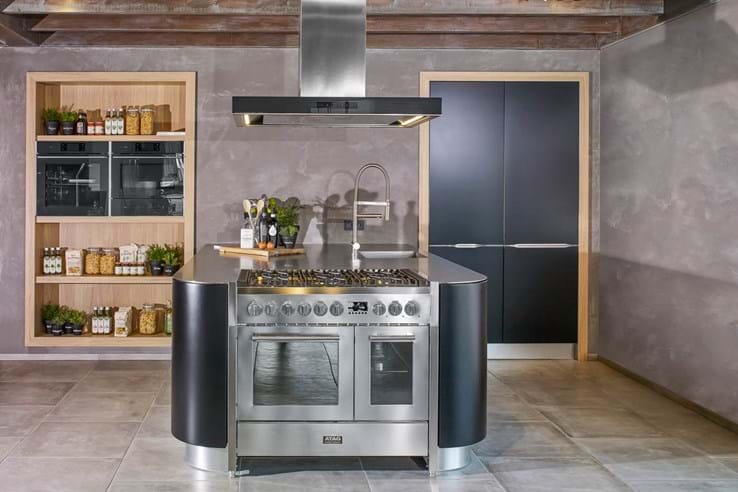 Met name blauwe keukens, zwarte keukens, grijze keukens en industriële keukens laten zich roestrood maar wat graag aanleunen. Hun donkere achtergronden vormen het perfecte decor om steen te laten schitteren.