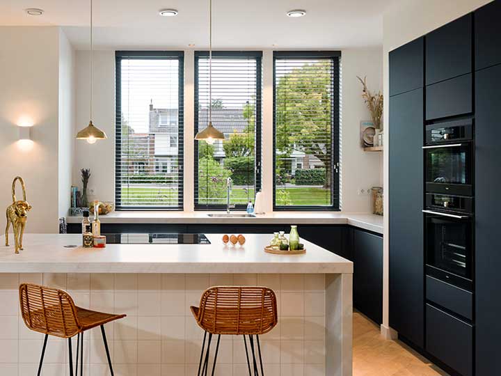 Met name (mat) zwarte keukens zijn helemaal van nu! Niet alleen zwarte keukens, maar ook werkbladen en apparatuur zijn steeds vaker donker van kleur. Alles in het zwart? Ja!
