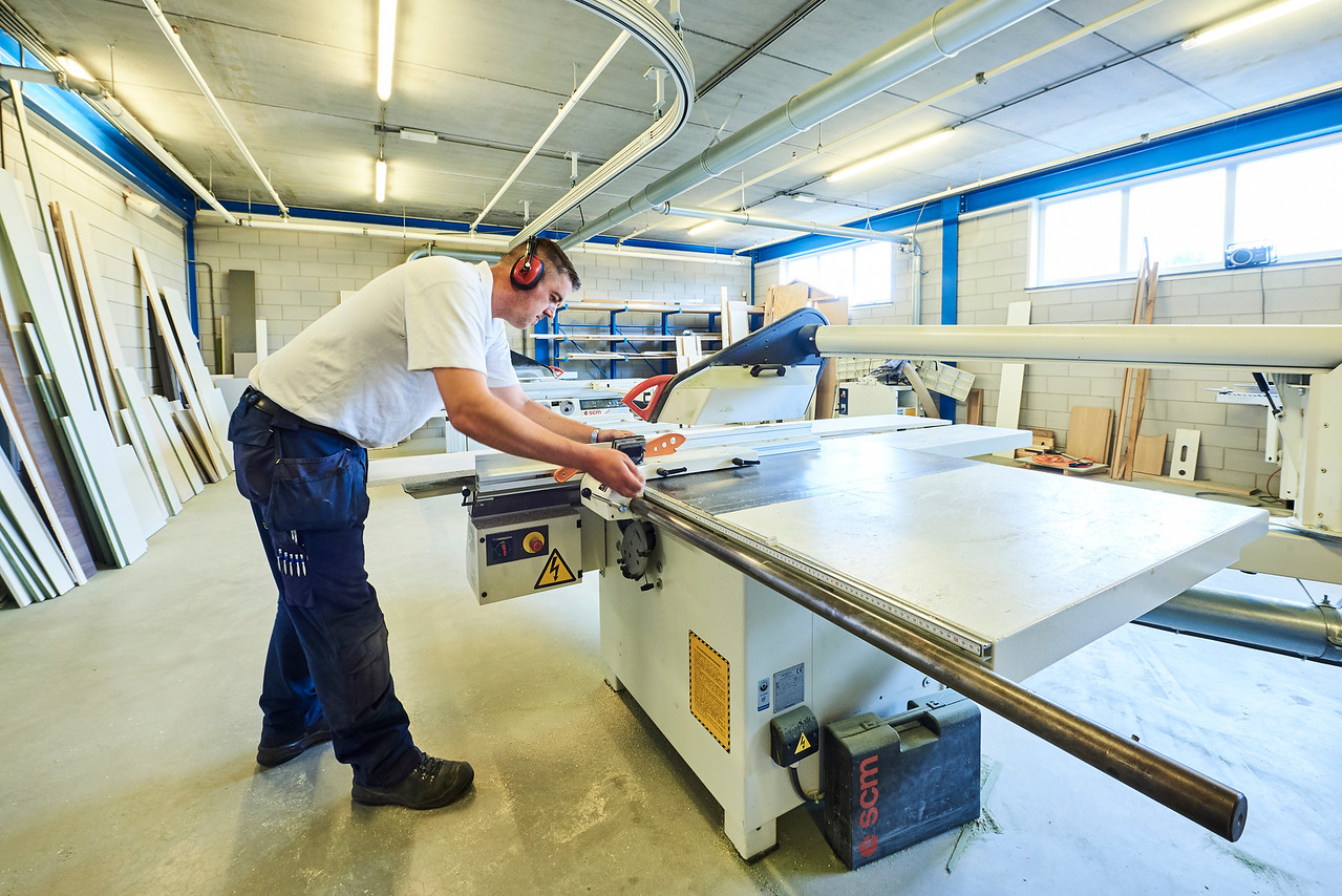 Om maatwerk te leveren beschikken we bij Tieleman Keukens over een eigen werkplaats. In die werkplaats kunnen we timmeren, frezen en heel secuur materialen op het juiste formaat zagen. De eigen werkplaats beschikt over de modernste apparatuur, waardoor er voor elke woonwens een keuken op maat gefabriceerd kan worden.