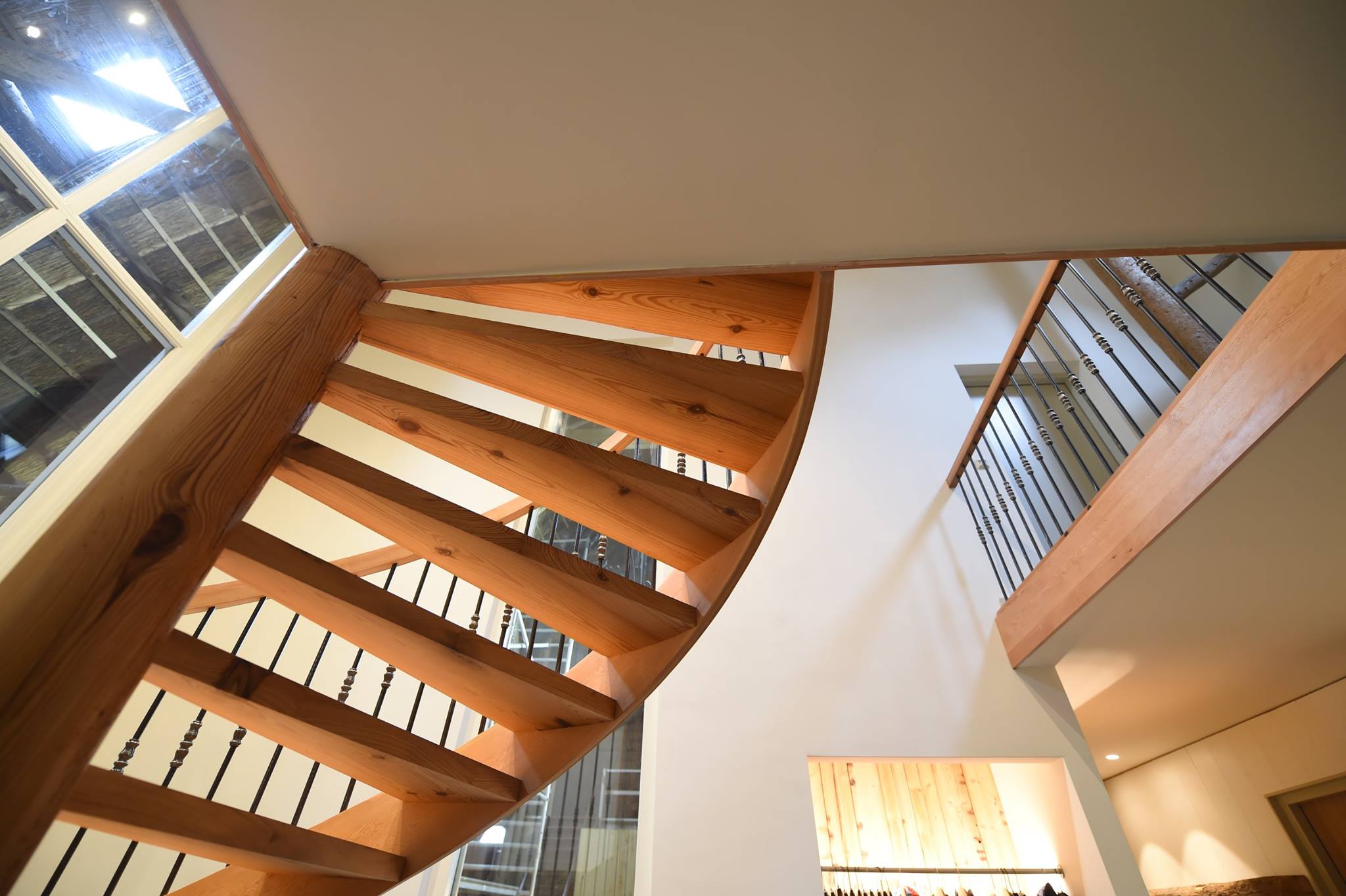 Oude boerderij 1870 te Sint Nicolaasga geheel gerenoveerd. Van het oude Amerikaanse grenen bintwerk hebben wij deze wokkeltrap en balustrade gerealiseerd