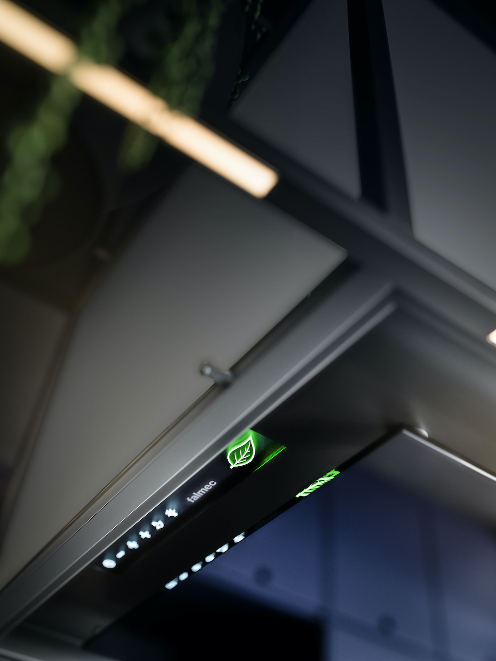 Naast de bekroonde Spazio is deze nieuwe Matrix veelbelovend. Eenvoudig en strak door zijn geometrische lijnen, model Matrix is het nieuwste ontwerp in de E.ion-collectie. Voorzien van recirculatie dankzij het door Falmec toegepaste bipolaire ionisatie principe. Een compleet luchtzuiveringssysteem verpakt in een design jasje.