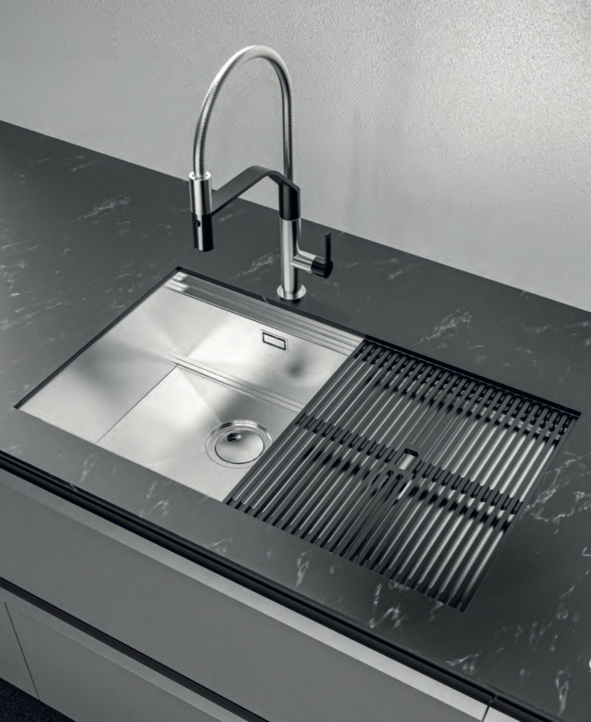 De luxe van een brede Foster-spoelbak – puur Italiaans design. Vakmanschap uit Italië.