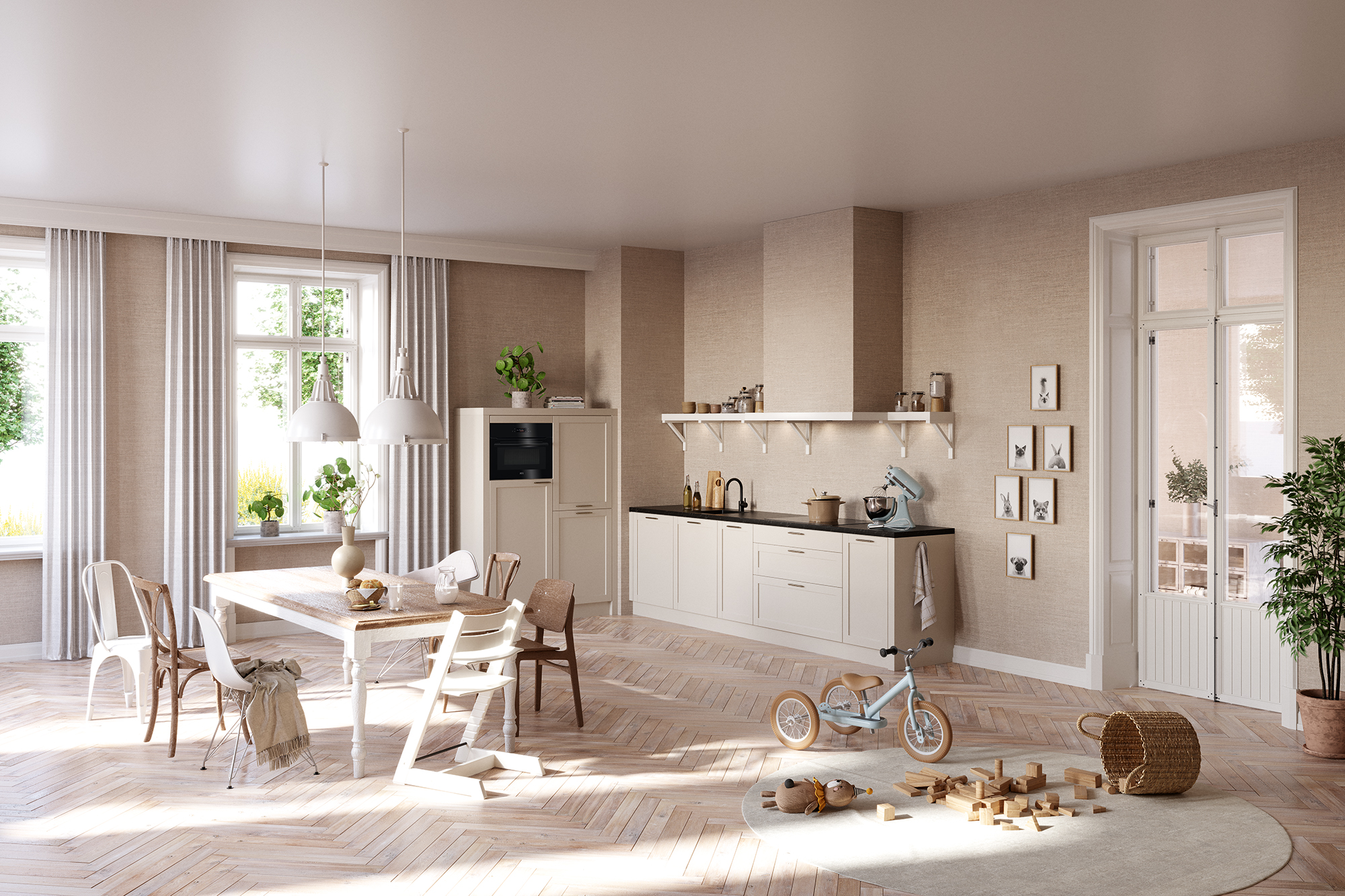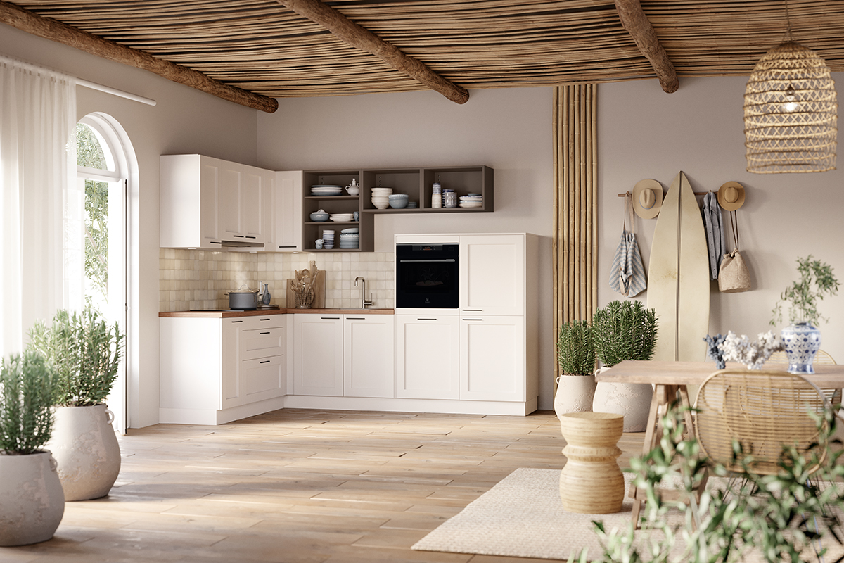Beige is helemaal in en blijft populair. Deze neutrale en minimalistische tint creëert een ideaal fundament voor zowel klassieke als moderne interieurs. Beige onderscheidt zich door zijn veelzijdigheid – het gaat naadloos samen met zowel koele als warme kleuren, waardoor je eindeloos kunt variëren. Bovendien zijn er talloze nuances van beige beschikbaar. Denk bijvoorbeeld aan tinten zoals zand, leem of schelpenwit – allemaal geïnspireerd door de natuur. Een perfect voorbeeld van een zandkleurige keuken is onze Migot Zandgrijs.