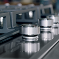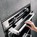 Net zoals een perfecte mix van ingrediënten een hemels gerecht kan creëren, zo brengt de combinatie van zorgvuldig gekozen materialen een onweerstaanbaar design tot stand. Vertaald naar de nieuwe knoppen van de huishoudelijke toestellen: hedendaags chroom, de industriële look van geborsteld staal, een vleugje rood glazuur en een visgraatmotief voor een vaste greep.