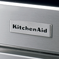 In de keuken van weleer droegen huishoudapparaten met trots een metalen logo. De nieuwe KitchenAid-collectie van grote apparaten knipoogt naar vroeger met een stijlvol plaatje met het KitchenAid-logo in reliëf. Zo drukt KitchenAid zijn stempel op ieders culinaire kunsten