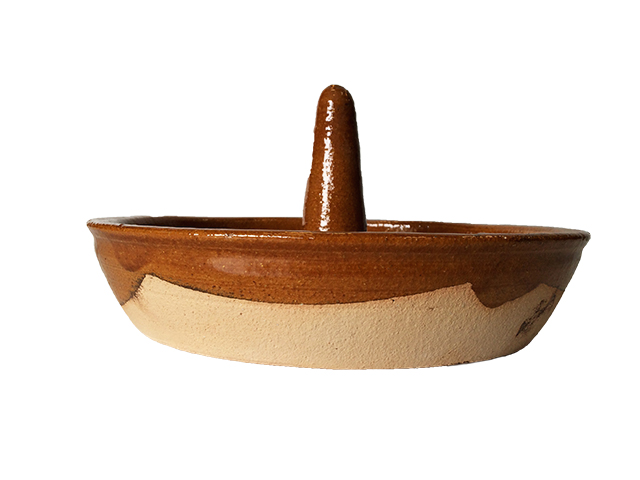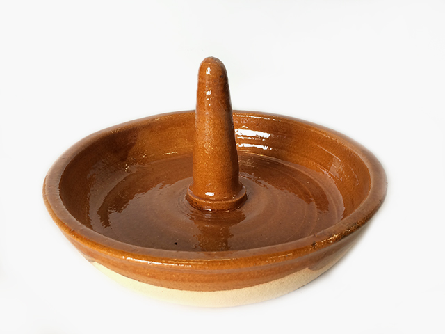 Vuurvaste ovenschaal/ rond voor kip Ø 28 cm Ovenschaal Asapollos, speciaal om kip te grillen in uw houtgestookte oven.
