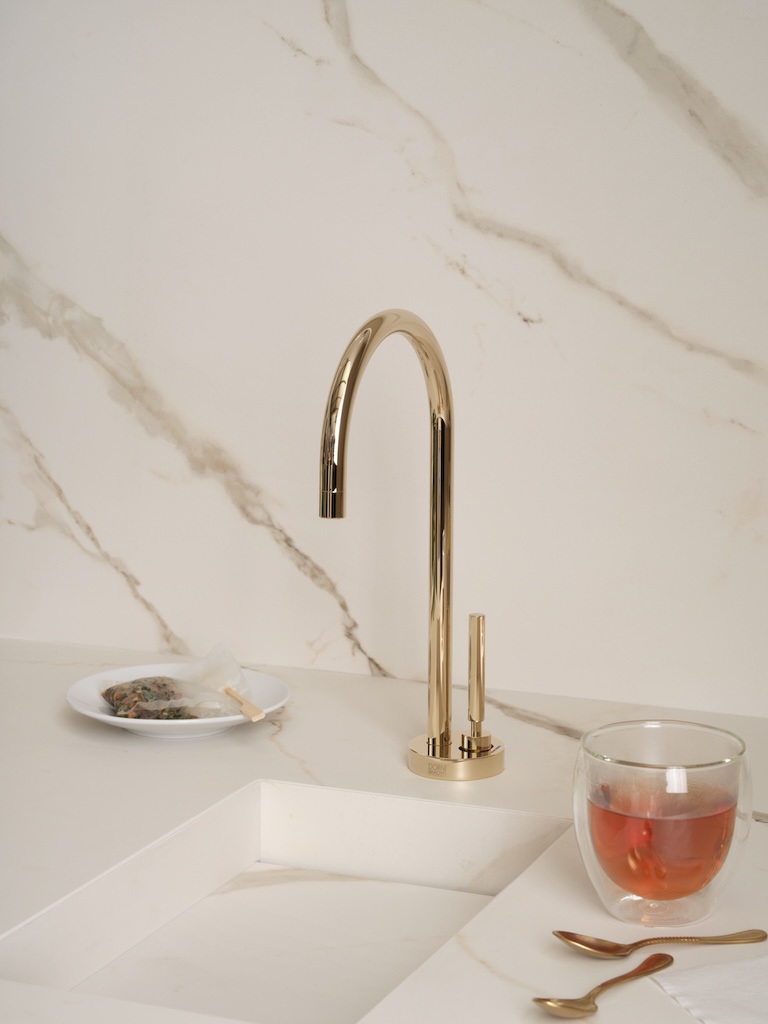 Voor een uniforme uitstraling in de keuken zijn de nieuwe Hot & Cold Water Dispensers verkrijgbaar voor alle designseries van Dornbracht. Er zijn ook verschillende oppervlakken beschikbaar, waaronder de nieuwe Brons geborsteld afwerking. Voor Meta Square, Tara, Tara Ultra en Vaia is er ook een extra variant die alleen voor koud water kan worden gebruikt.