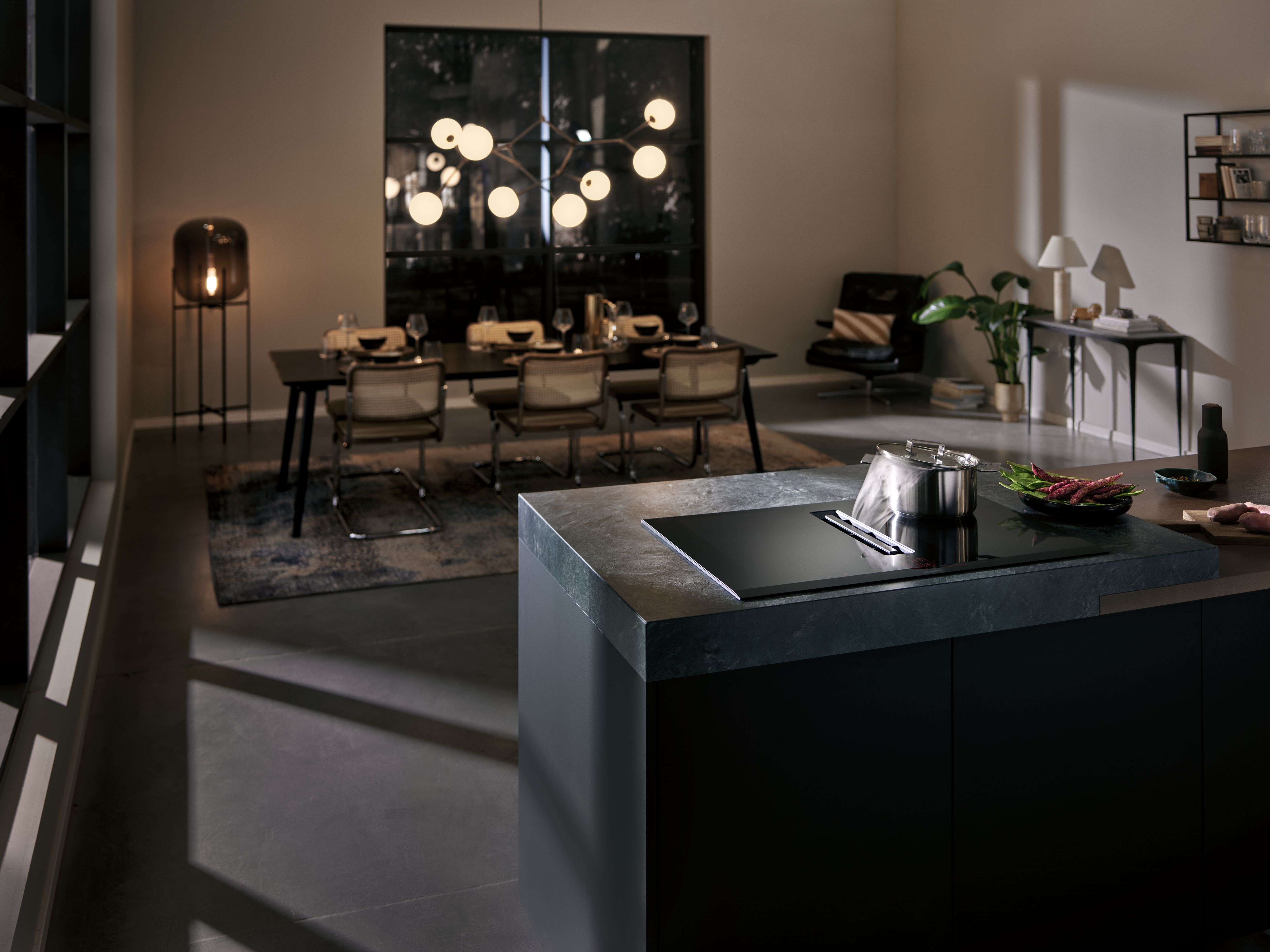 Het ruimtebesparende concept biedt alle mogelijkheden om de keuken van uw dromen te creëren. De volledig strakke kookplaat past zelfs in een zwevend werkblad, en de geïntegreerde afzuiging zorgt ervoor dat u vrij zicht heeft boven het werkblad. Perfect als je houdt van een open ruimte en een strak design.