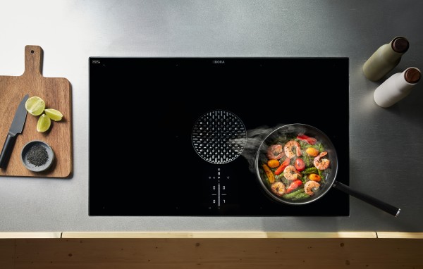 Opvallende kenmerken zijn zowel de standaard meegeleverde stoominzet als de speciaal ontwikkelde BORA kantelbare deksels op de vijfdelige Assist pannenset. Deze kunnen met een eenvoudige handbeweging in verschillende hoeken worden gekanteld, zodat de stoom rechtstreeks in de kookveldafzuiging wordt geleid, wat helpt om de lucht fris te houden, vooral in open keukens.