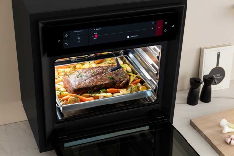 Dankzij gelijkmatige stoomopwekking is het garen op elk niveau in de oven perfect gelijk. De automatische stoomafzuiging zorgt voor een helder zicht en een geurloze keuken. Het displayscherm is zo groot mogelijk gemaakt voor optimale bediening, en schoonmaken is verleden tijd dankzij het automatische zelfreinigingsprogramma.