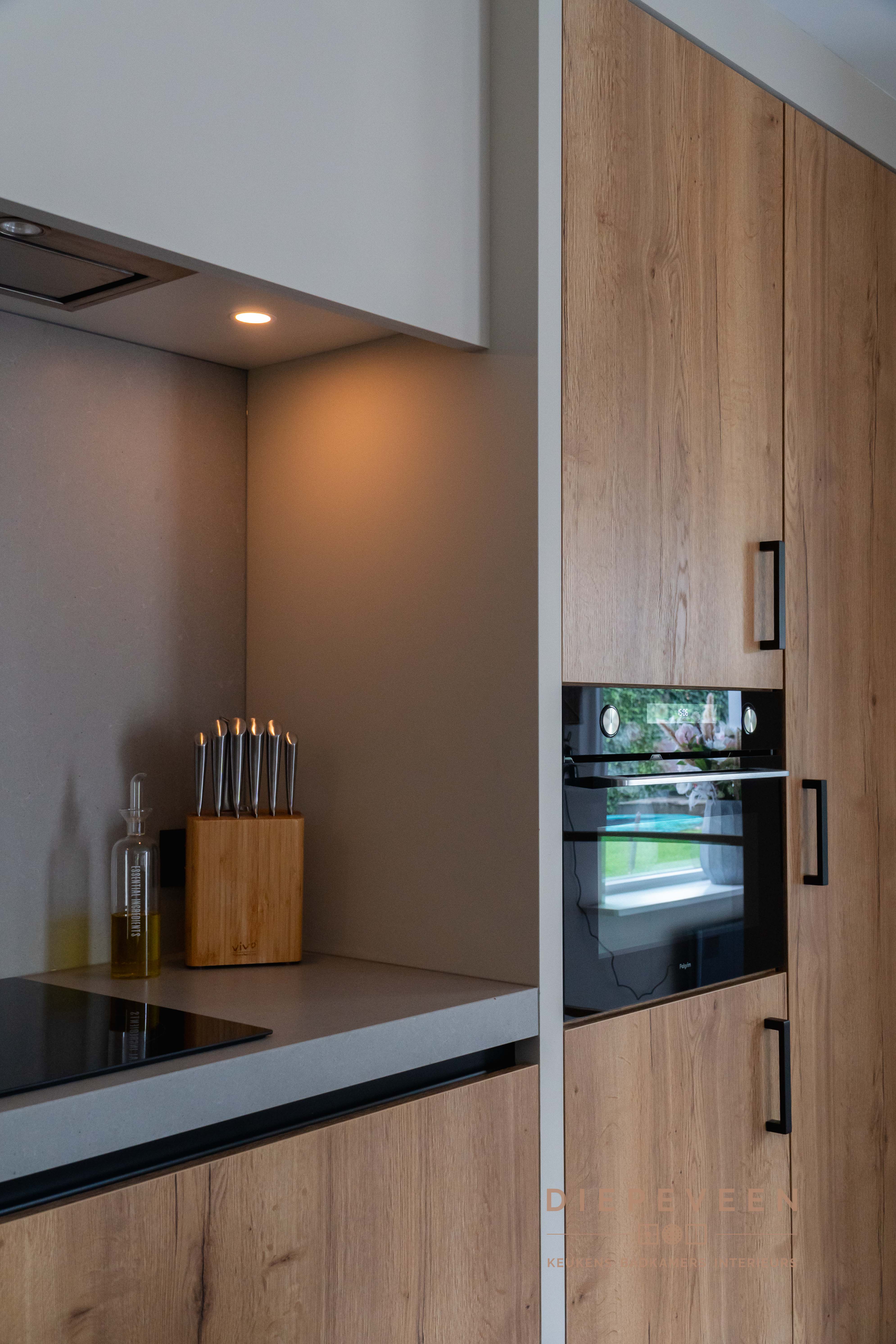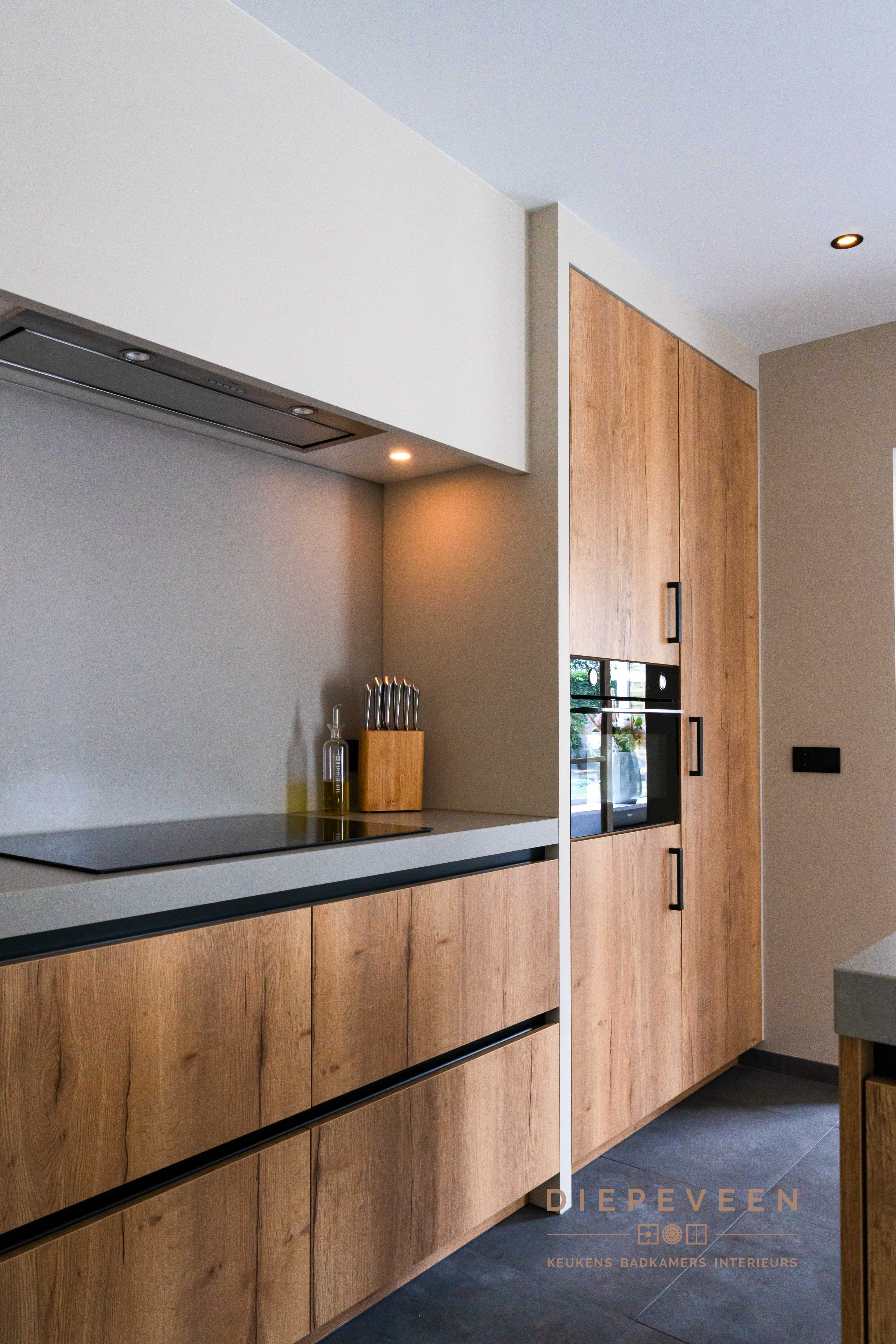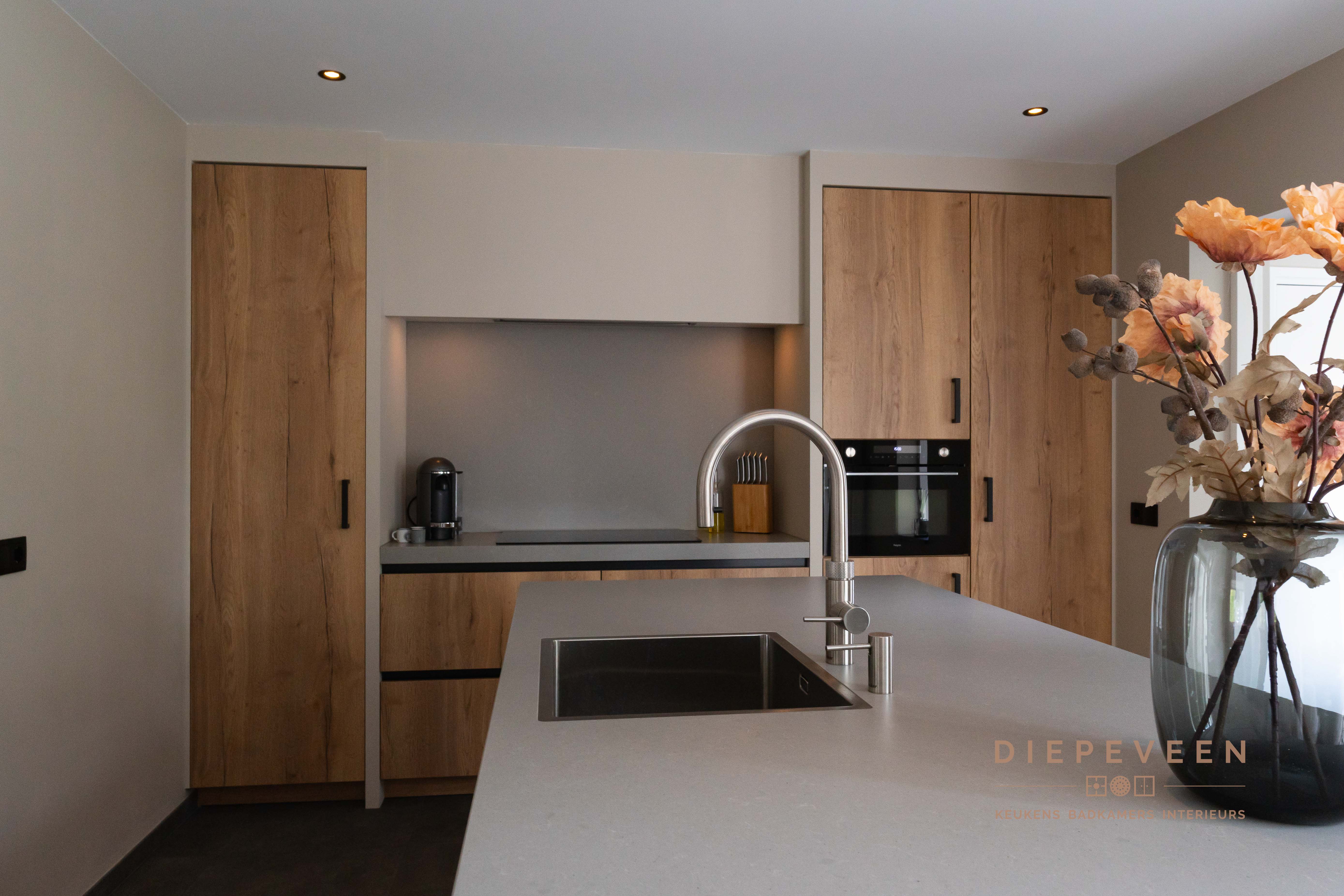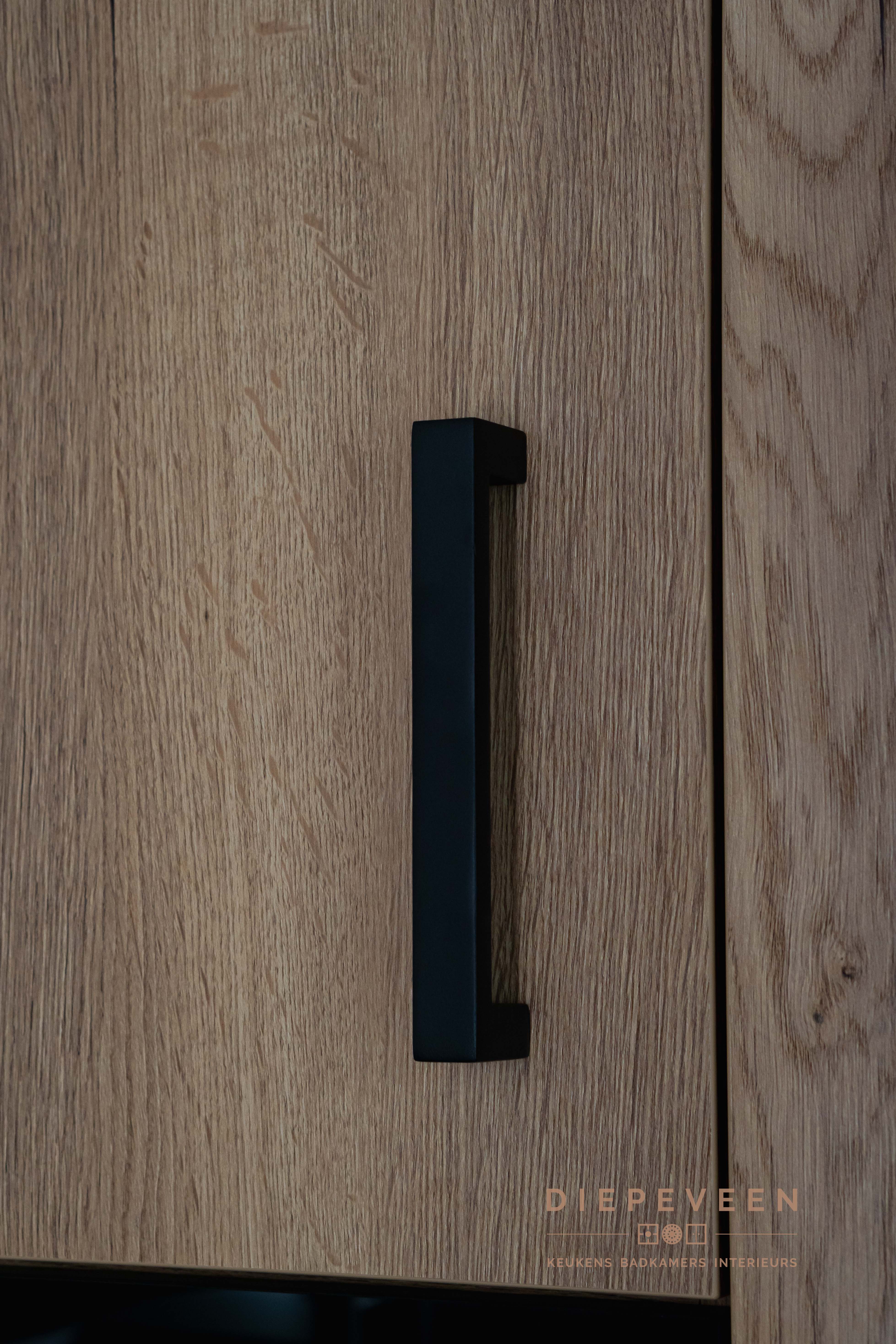 || STIJLVOLLE HOUTEN KEUKEN || Prachtig hoe deze landelijke stijl is gecombineerd met zwarte elementen, zoals de greep lijsten op het eiland en de grepen op de hoge kasten. Aan ruimte geen gebrek, er is een ruime doorloop om het eiland heen wat het mooi maar ook praktisch maakt. De houtkleur van de kasten komt door het lichtinval extra mooi naar voren!