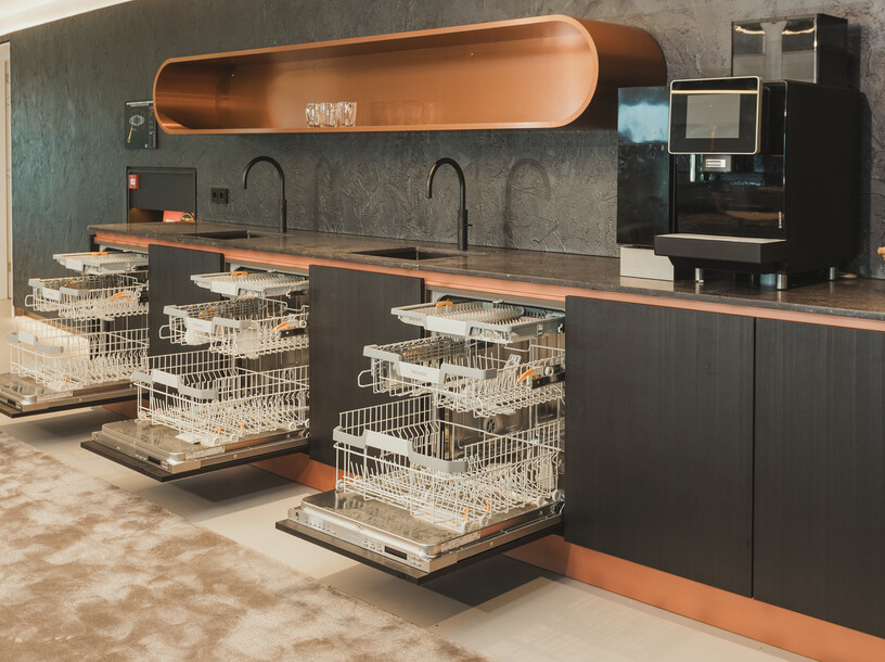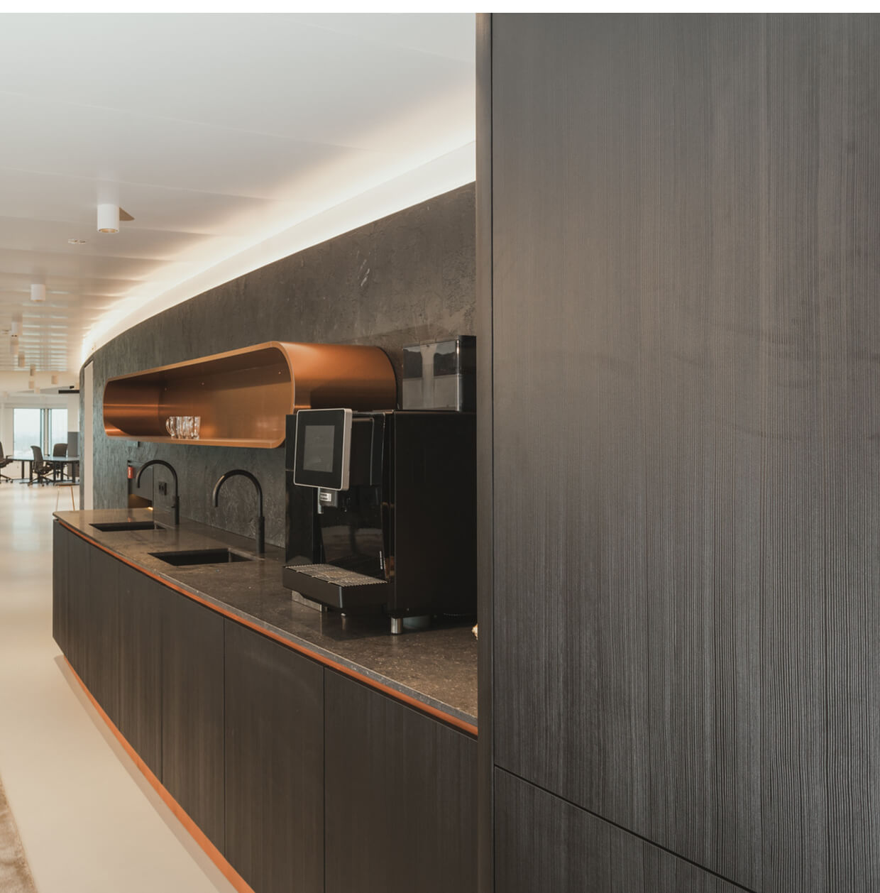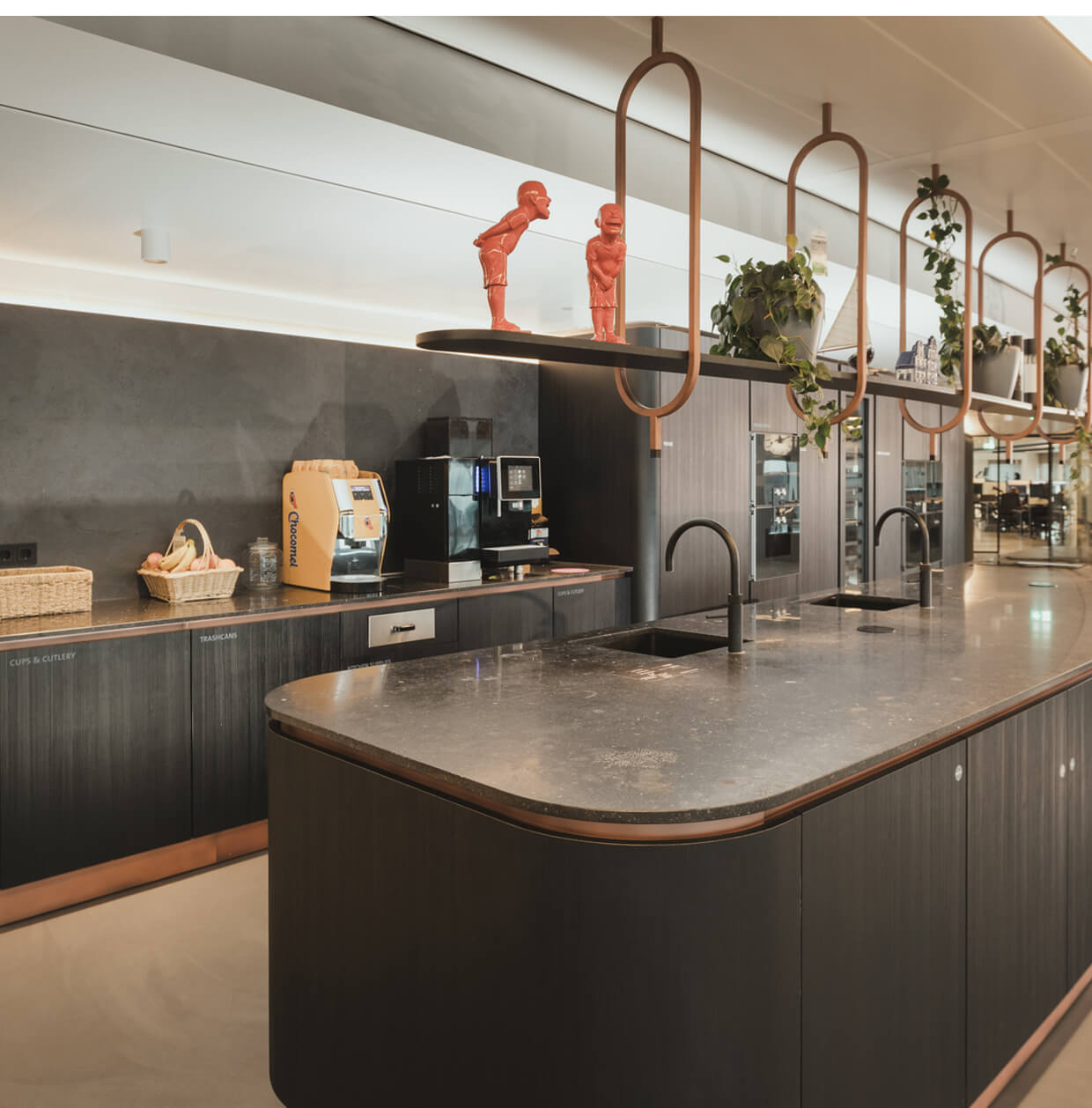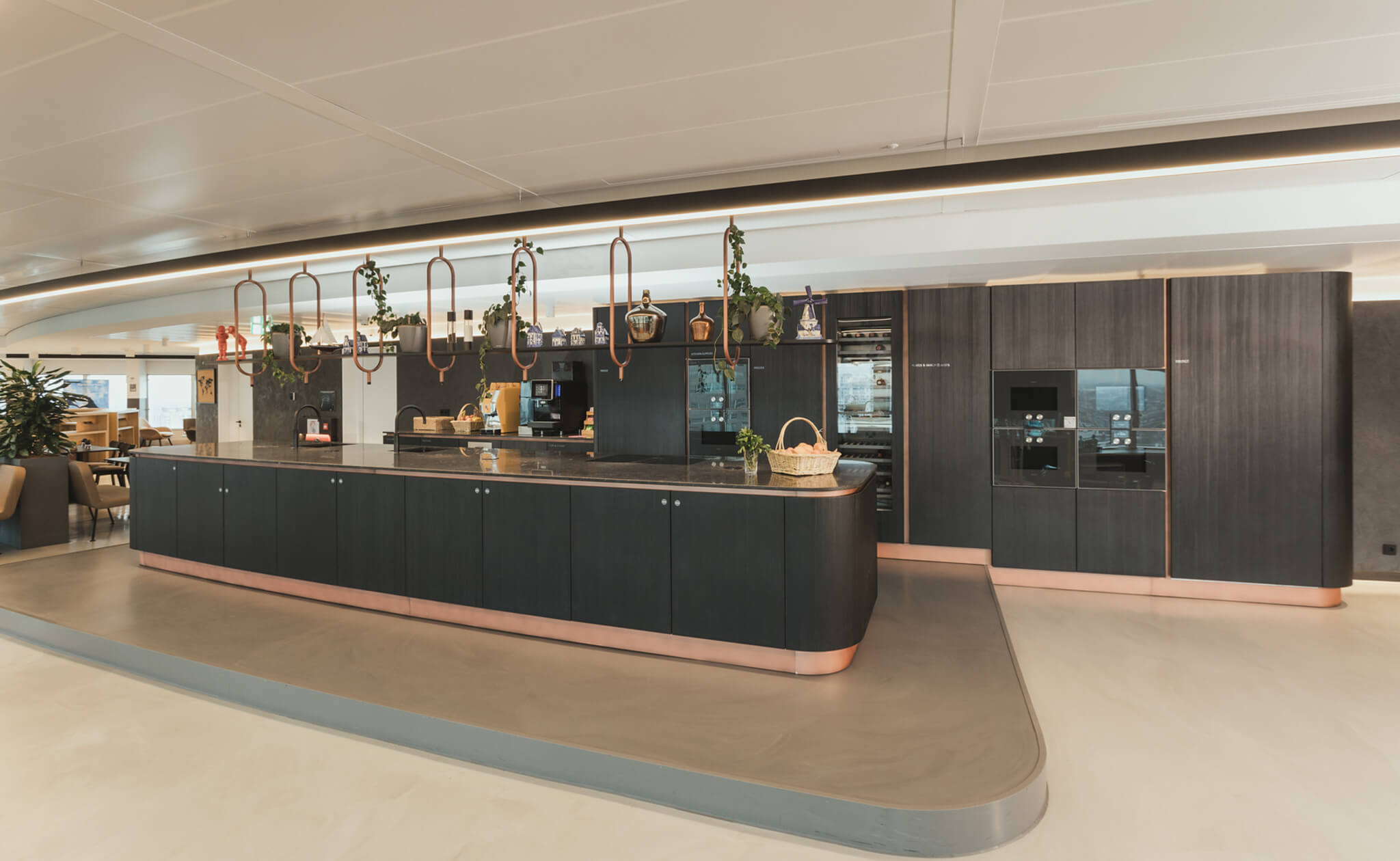 Deze stijlvolle bedrijfskeukens zijn uitgevoerd met Houston fronten in een stijlvolle zwarte kleur, gecombineerd met verfijnde koperen details die de uitstraling naar een hoger niveau tillen!
