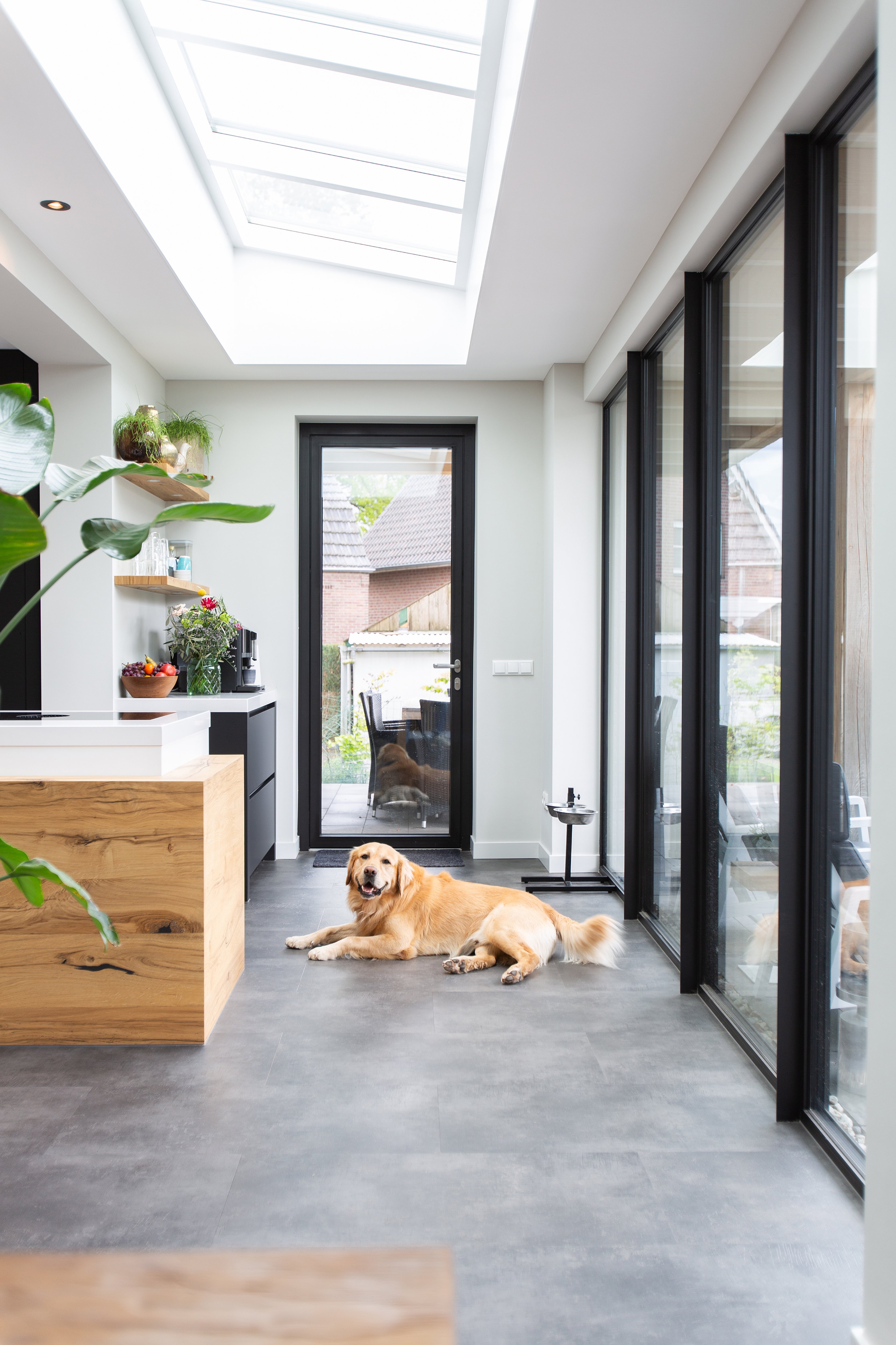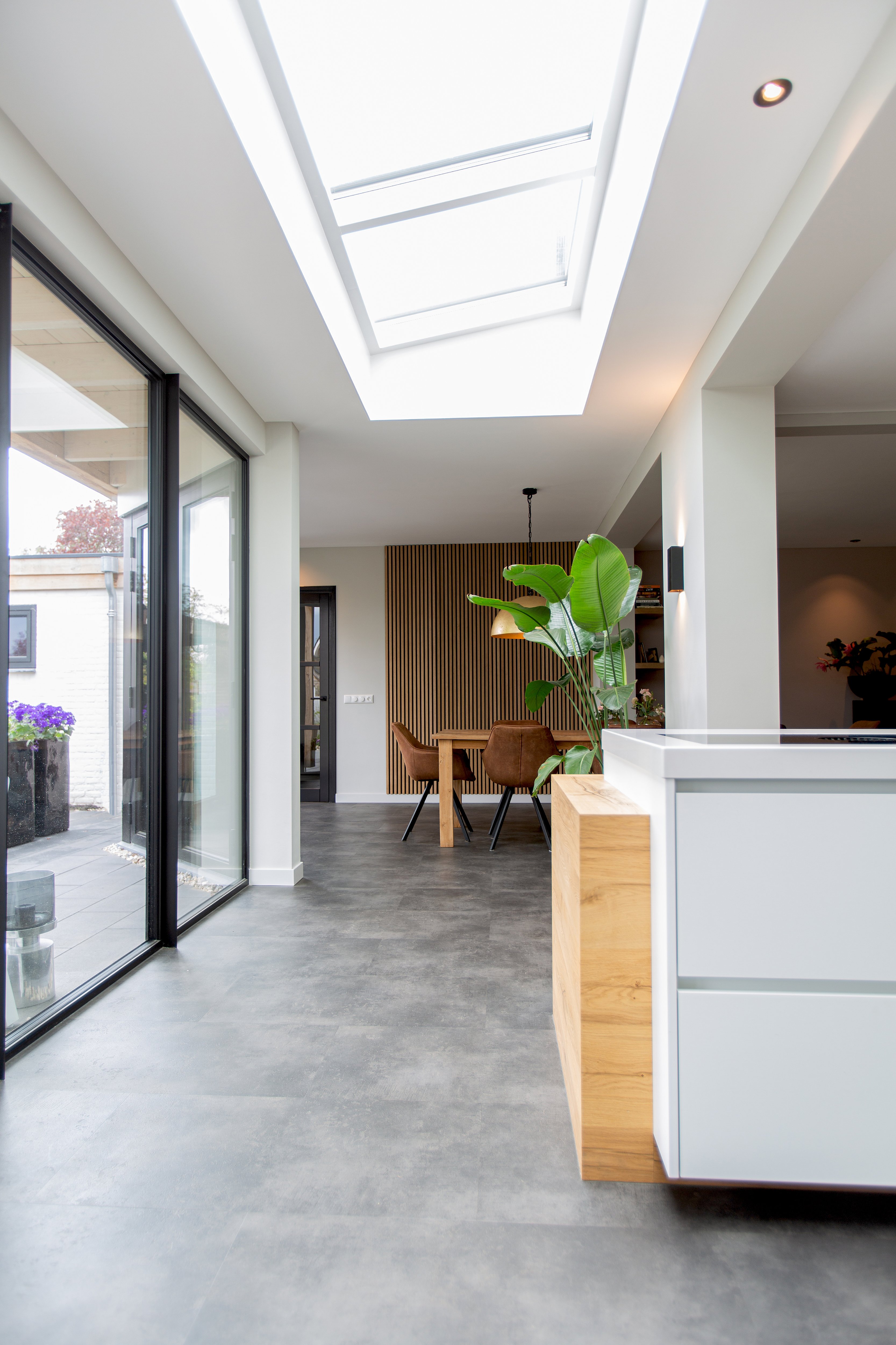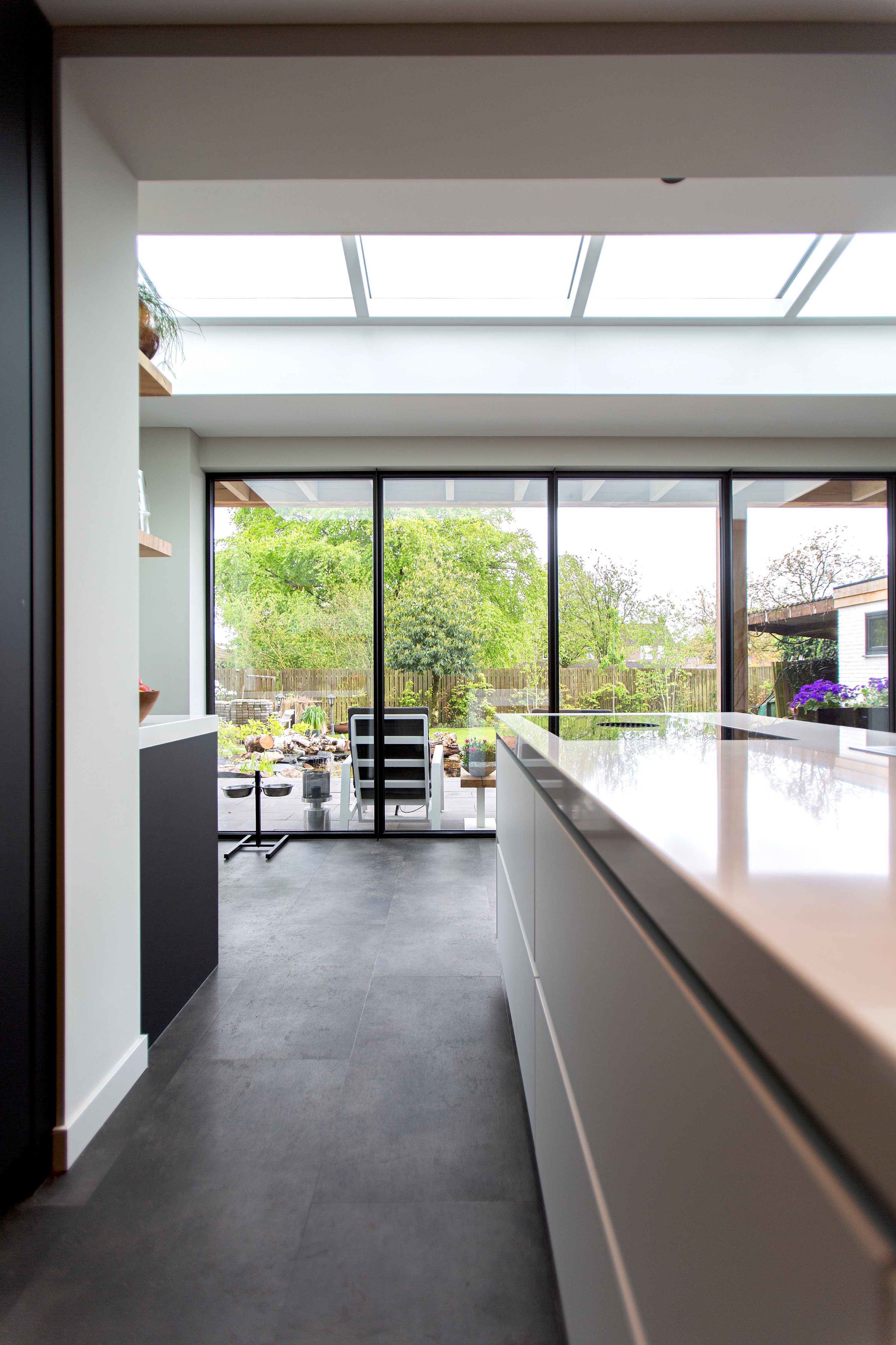 Lichte minimalistische keuken met dakraam voor optimale lichtinval