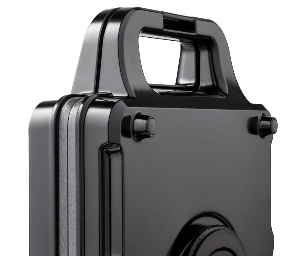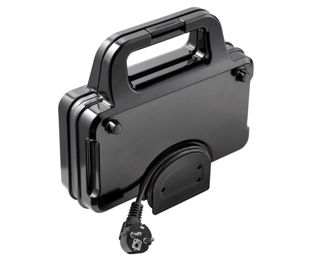 De panini grill is compact van formaat en het zwarte en zilveren design aan de buitenkant geeft een luxe uitstraling. Je kunt hem horizontaal of verticaal in de hoek opbergen zonder al te veel ruimte in beslag te nemen. Het snoer heeft ook een opbergmogelijkheid aan de onderkant van het apparaat.