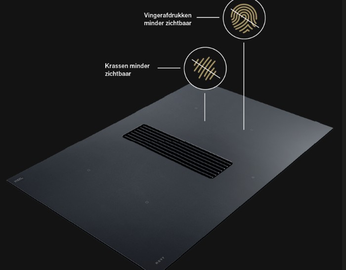 Lichte krassen vervagen subtiel in de structuur van het matte glas – ideaal voor wie houdt van een stijlvolle kookplaat die er ook na veelvuldig gebruik nog netjes uitziet.