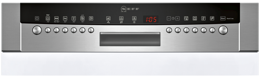 De integreerbare vaatwasser van Neff is 60cm breed en is van Roestvrij staal. Hierbij blijft alleen het bedieningspaneel zichtbaar en de toesteldeur wordt bekleed met een meubeldeur uit het originele keukenmeubelgamma. Diverse modellen van Neff hebben speciale functies: GlansDroog, IntensiveZone, VarioSpeed Plus, HygiënePlus. Voor meer informatie en specificaties bezoek ook eens www.neff.nl.