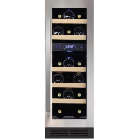 Je kunt wijnflessen plaatsen op de houten leggers van gelakt beukenhout, deze wijnklimaatkast heeft ruimte voor maximaal 45 flessen wijn.