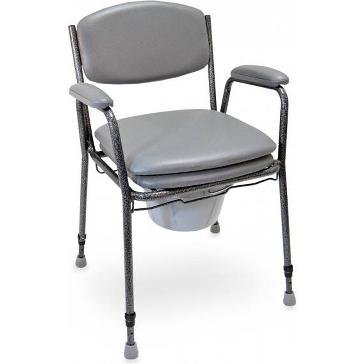 De Homecare Innovation in hoogte verstelbare commode stoel biedt comfort en gebruiksgemak voor mensen die extra ondersteuning nodig hebben bij hun toiletbezoek. Deze stevige WC-stoel heeft een draagvermogen van 130 kg en is voorzien van een zachte zitting en rugleuning voor extra comfort. De zitting is in hoogte verstelbaar van 52 tot 64 cm. De stoel is uitgerust met een handige emmer met deksel.
