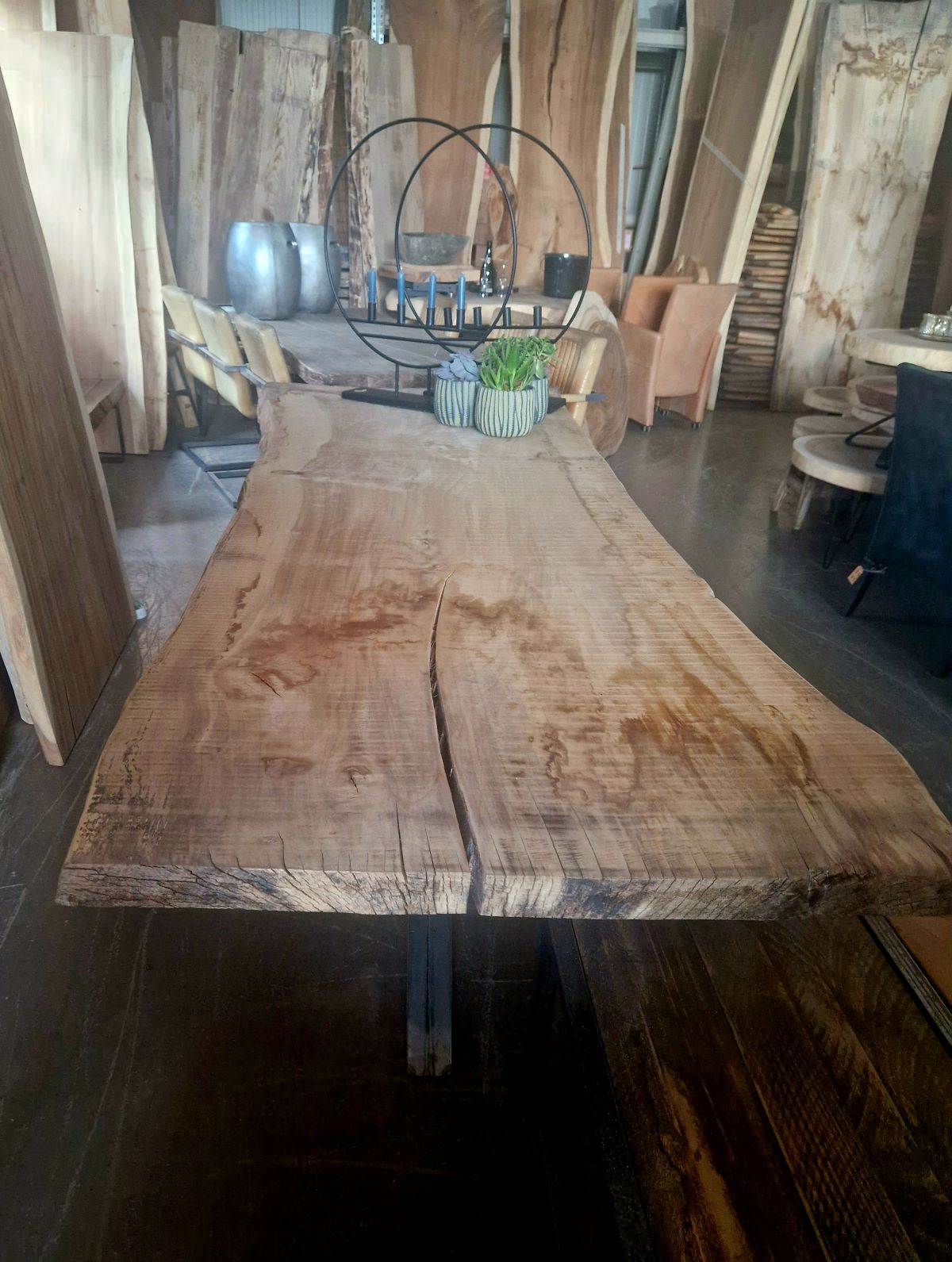 Deze houten boomstamtafel uit 1 deel staat in vrijwel elk interieur. Landelijk, strak of romantisch, zelfs bij hotel chique heeft deze tafel een mooie uitstraling door het contrast dat dan ontstaat.
