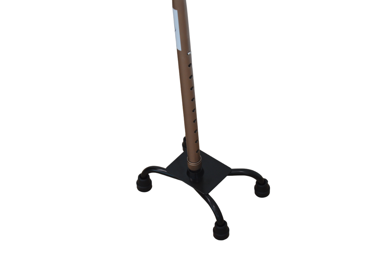 Een handige champagne kleurige wandelstok met vier poten die een stabiele basis biedt. De wandelstok heeft een gewichtscapaciteit van maar liedst 136 kg en is makkelijk in hoogte verstelbaar van 94 tot 114,3 cm hoog.