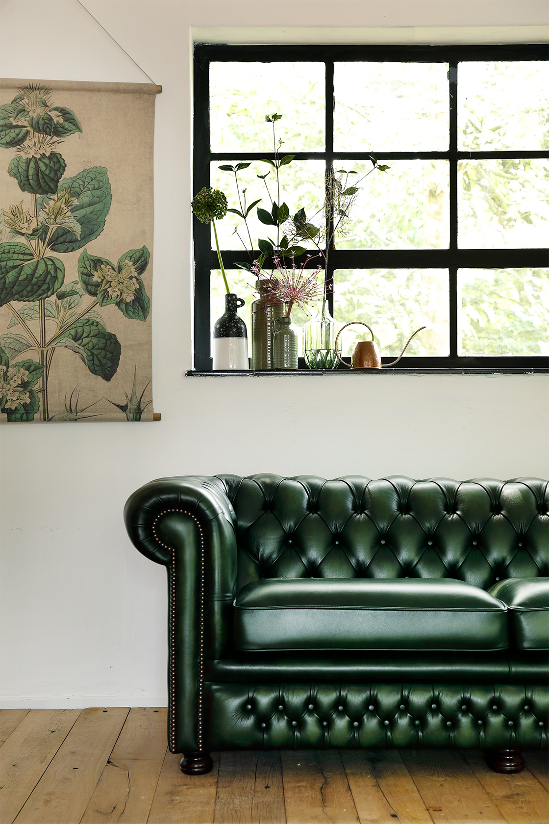 Ten slotte zijn alle Chesterfields leverbaar in honderden kleuren in effen (plain) of naturel kleuren.