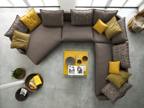 De twee comfortniveaus Classic en Lounge zorgen voor een individueel te kiezen zachtheid van zitting en rugleuning. De vele zachte kussens nodigen uit om plaats te nemen. Voor optimaal zitcomfort zijn er twee zithoogtes verkrijgbaar. Het moderne ovalen onderstel kan worden geleverd in de afwerkingen chroom mat, chroom glans, notenhout of eiken (in drie kleuren lak).