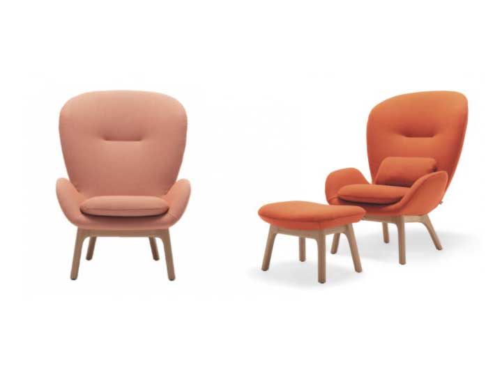 Zachte rondingen, een fijn uitgebalanceerde kromming van de rug, een strak gestoffeerde zitschaal en een nonchalant gestoffeerde zitting zijn de bijzondere kenmerken van deze nieuwe iconische fauteuil. De sterke rondingen vereisen de hoogste mate van precisie en vakmanschap bij het stofferen. Een allround siernaad benadrukt de hoge kwaliteit.