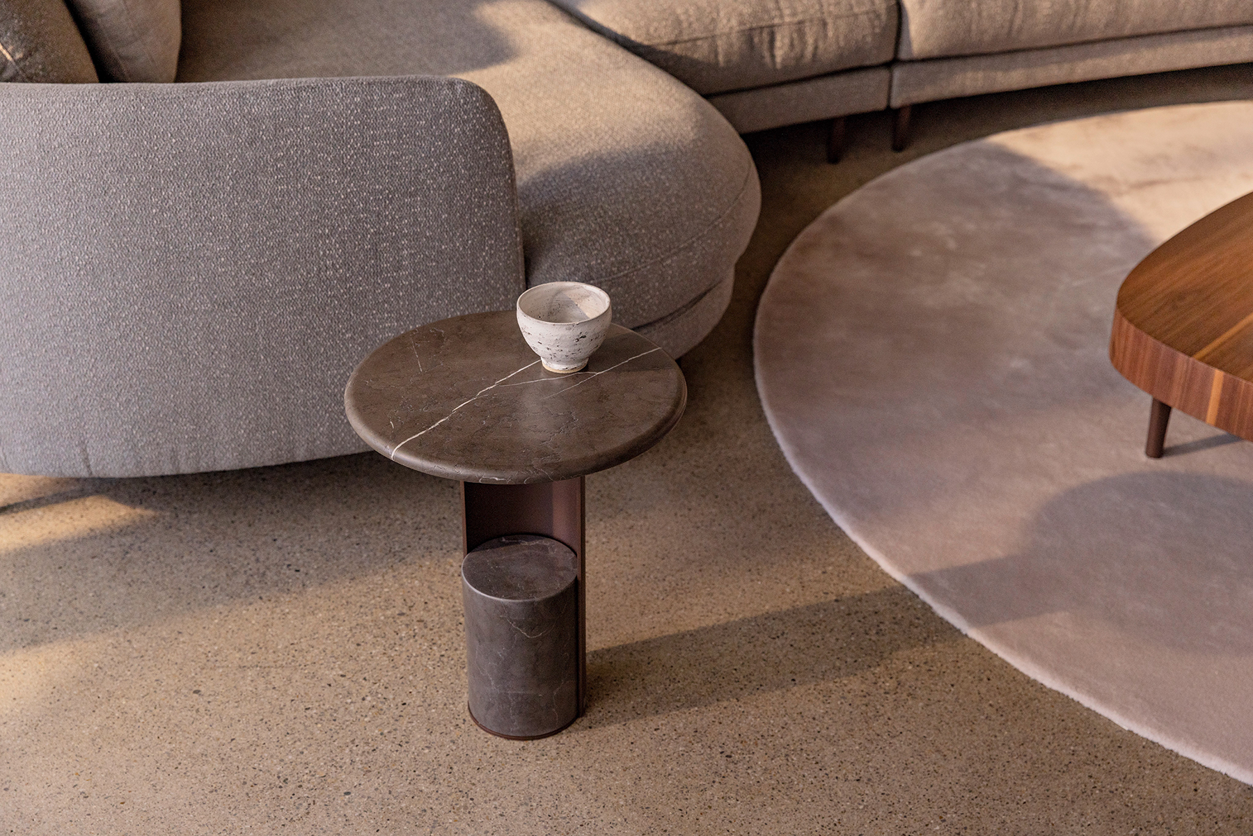 Met de Rolf Benz 972 bijzettafel, ontworpen door Sebastian Herkner, presenteert Rolf Benz een sculpturaal designicoon dat inspeelt op de trend naar natuursteen.