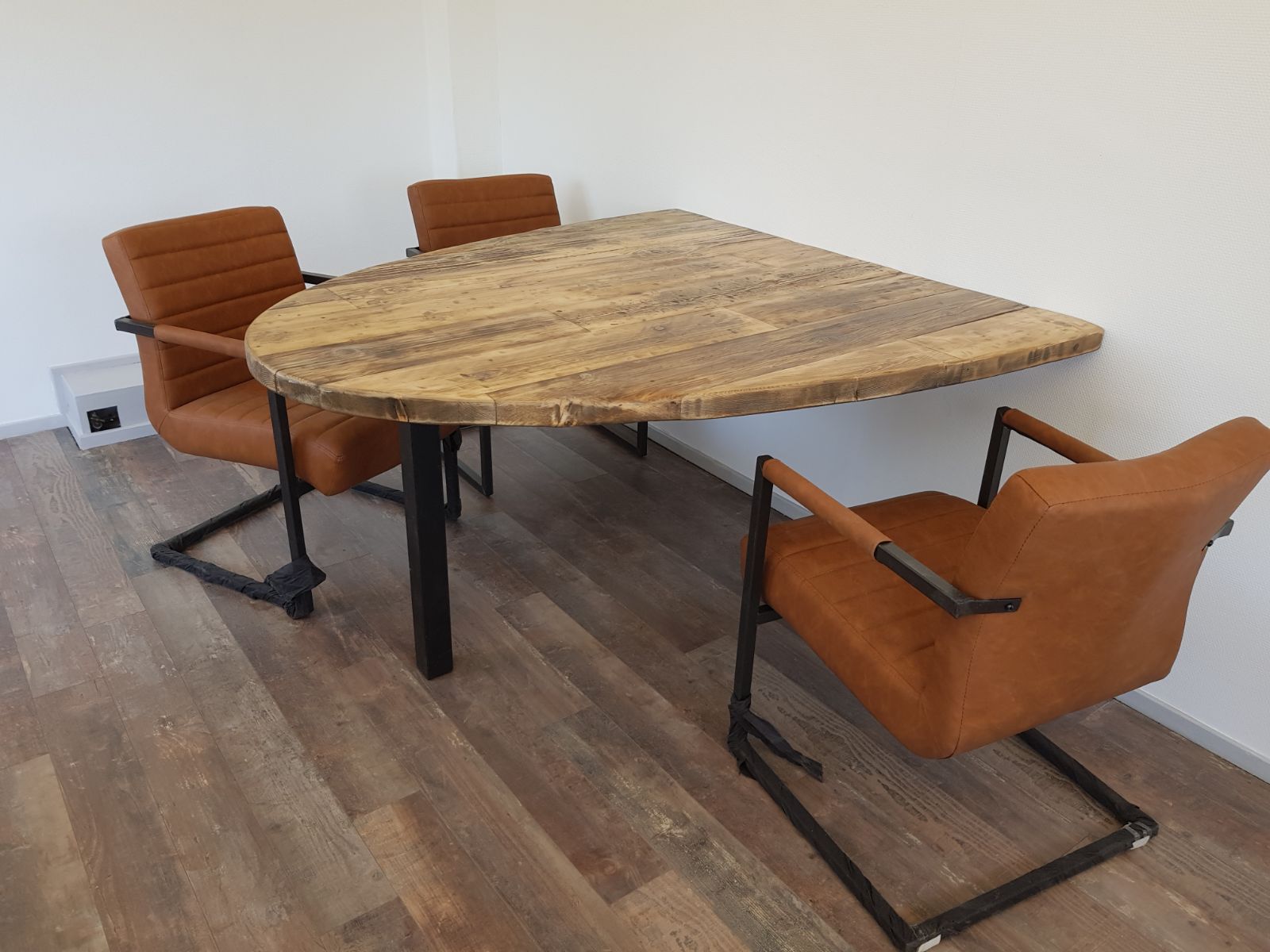 Het is een erg stevig hout wat zeker tegen een stootje kan! Onze meubelmakers maken deze tafel helemaal naar wens op maat, en dat in onze eigen werkplaats! U kunt dan kiezen voor een set poten of een midden onderstel, ook deze kan naar wens op kleur worden gemaakt. De tafel wordt binnen 5 weken geleverd, en onze bezorgers zullen deze tafel voor u monteren, tot u helemaal tevreden bent!