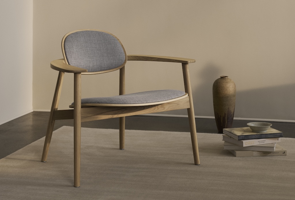 De nieuwe stoelen zijn gemaakt van FSC-gecertificeerd eikenhout en eiken fineer en zijn recyclebaar aan het einde van de levensduur – met uitzondering van het schuim dat wordt gebruikt onder de gestoffeerde zitting. De twee eetkamerstoelen komen in meerdere varianten: met en zonder gestoffeerde zitting, en in licht en donker eikenhout. De loungestoel komt in licht eikenhout met een warm grijze bekleding.