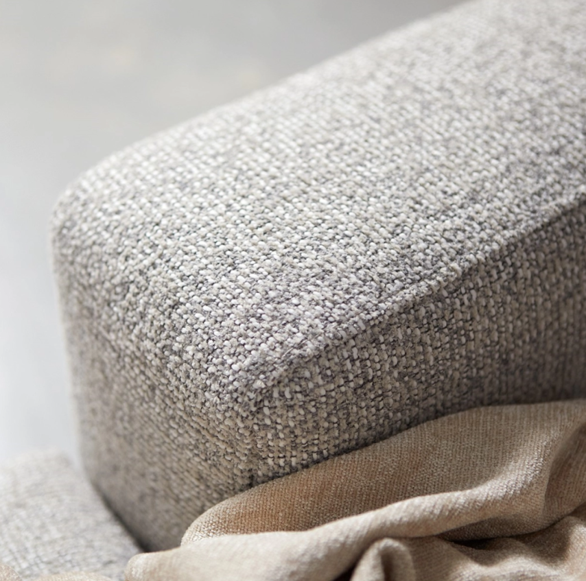 Hoekbank Como is verkrijgbaar in heel veel verschillende stoffen, zodat er altijd een kleur bij zit die past bij jouw smaak en stijl. De gemeleerde afwerking, zoals op de afbeeldingen, geeft de bank een extra luxe uitstraling, waardoor hij perfect past in zowel moderne als klassieke interieurs.
