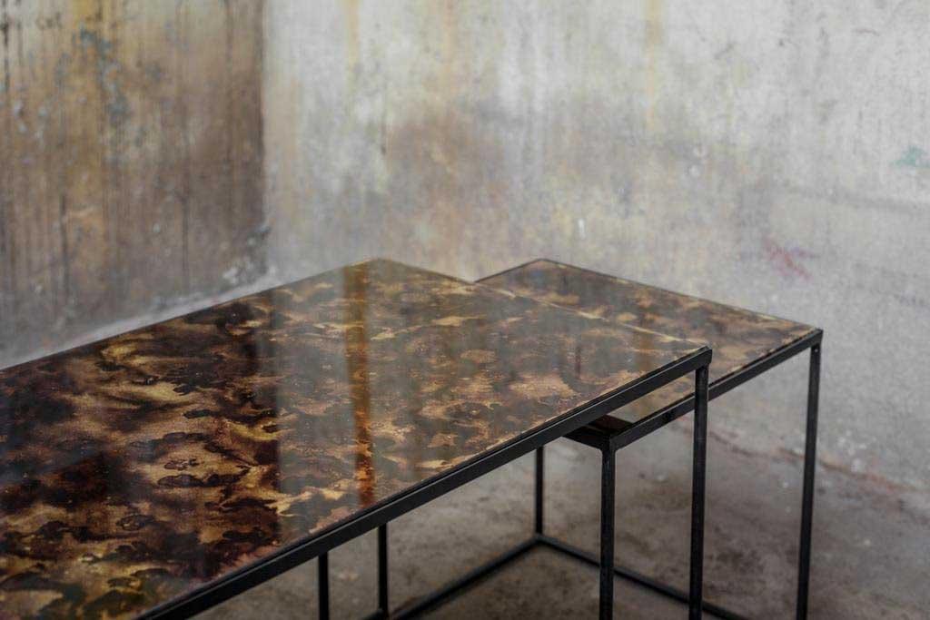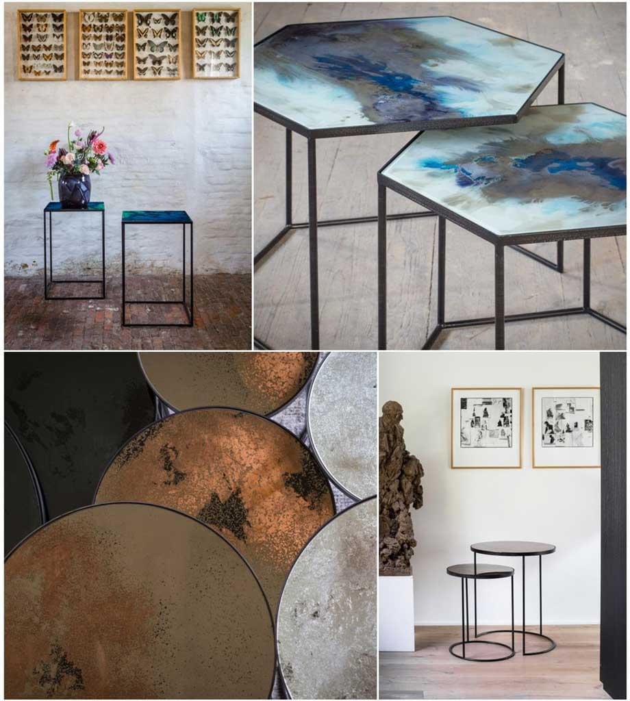 Maar ook de bijzettafels van Notre Monde tonen een knap staaltje creativiteit. De dynamische, dromerige prints zijn gemaakt van gelaagde pigmenten en metallic inkt, waardoor geen twee designs dezelfde zijn. Ideaal als decoratieve steun voor je mooiste bloemen, of als nuttig accessoire naast je zetel.