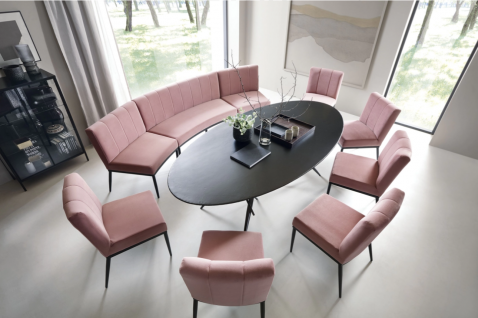 Deze combinatie van zinnenprikkeling, beweging en vorm vind je terug in de Tamarinde. Slanke, taps toelopende armleuningen zorgen voor een actieve rugondersteuning tijdens het diner, terwijl een kantelmechanisme een meer ontspannen houding na afloop van het diner mogelijk maakt. Wieltjes zorgen voor een soepele beweging rondom de tafel, waarbij de stoel moeiteloos – als een vlinder – over de eetkamervloer beweegt.