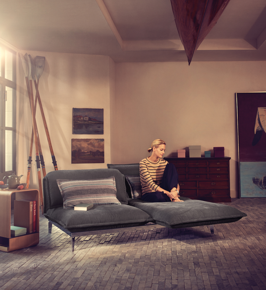 Zitten, loungen, liggen, chillen: dankzij een unieke comfortfunctie is de bank Rolf Benz NOVA eenvoudig te veranderen.